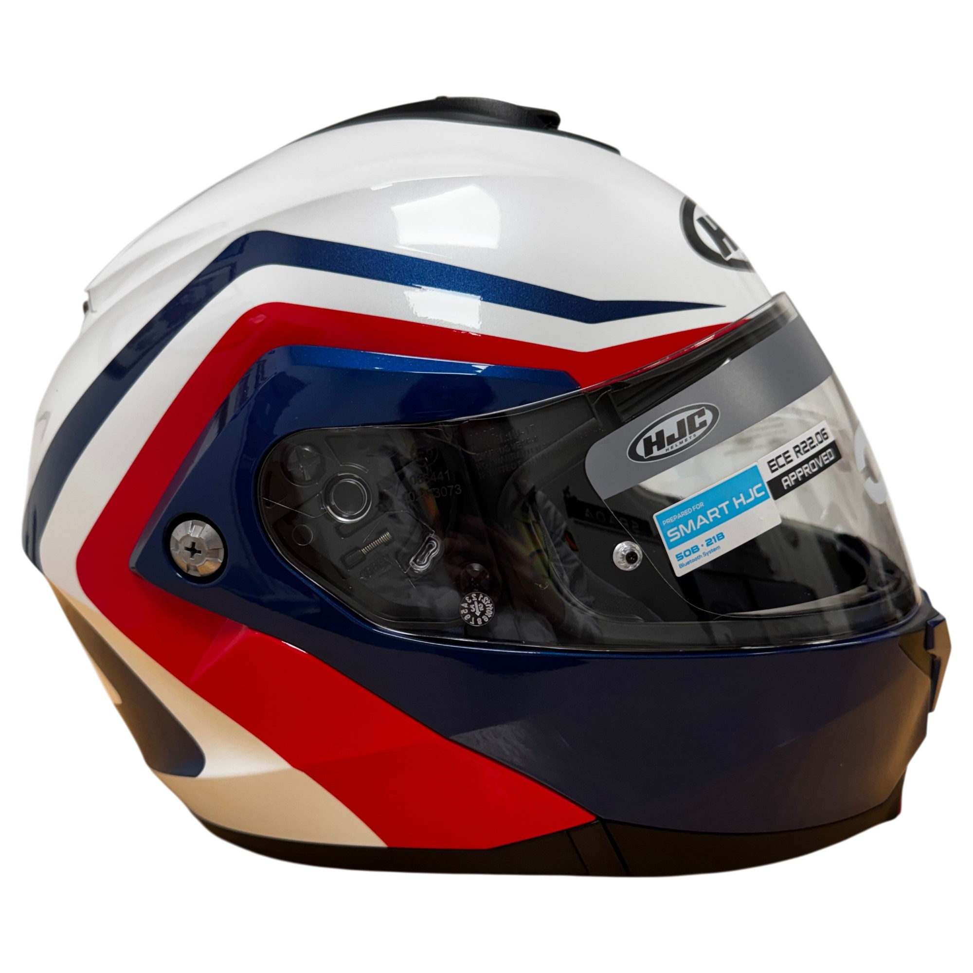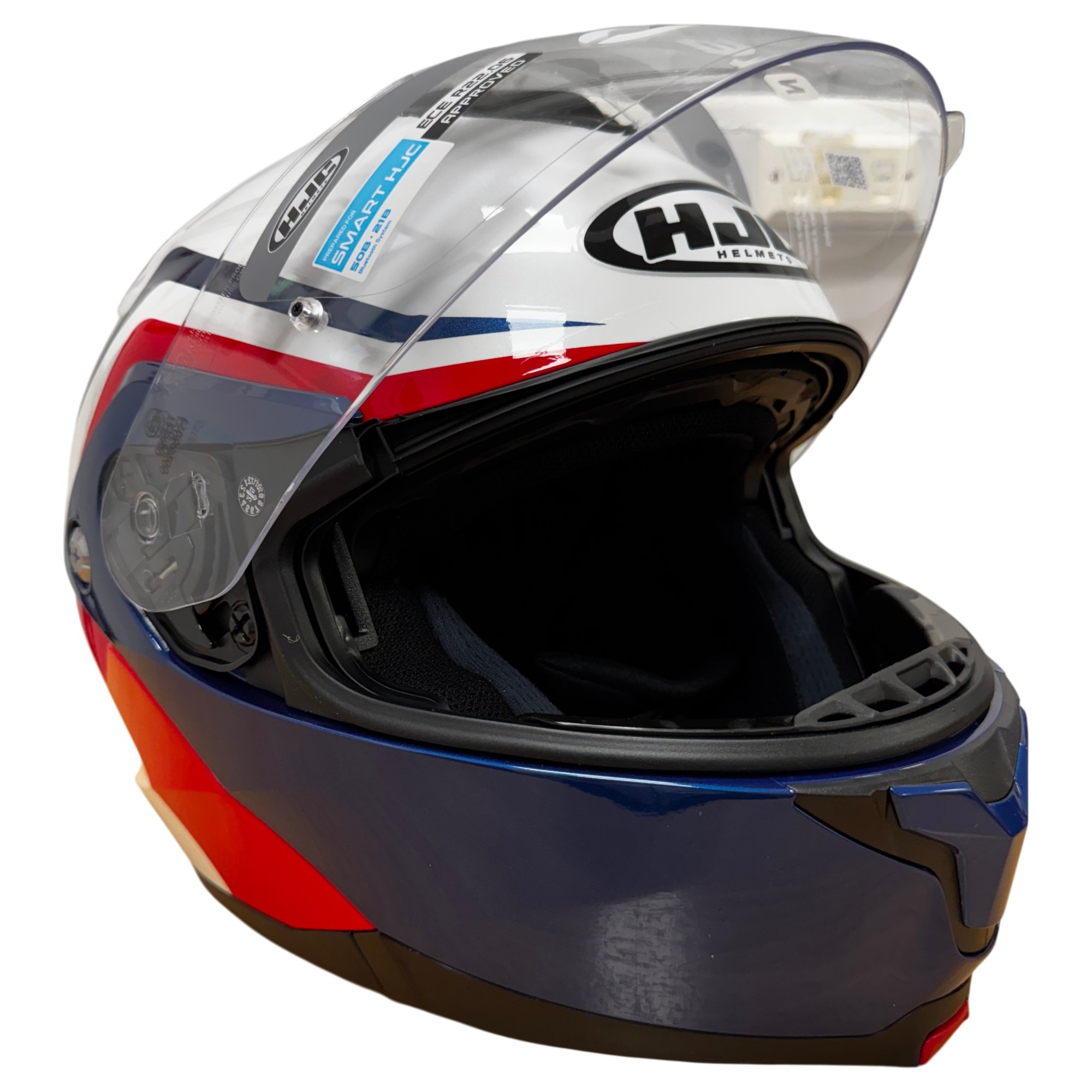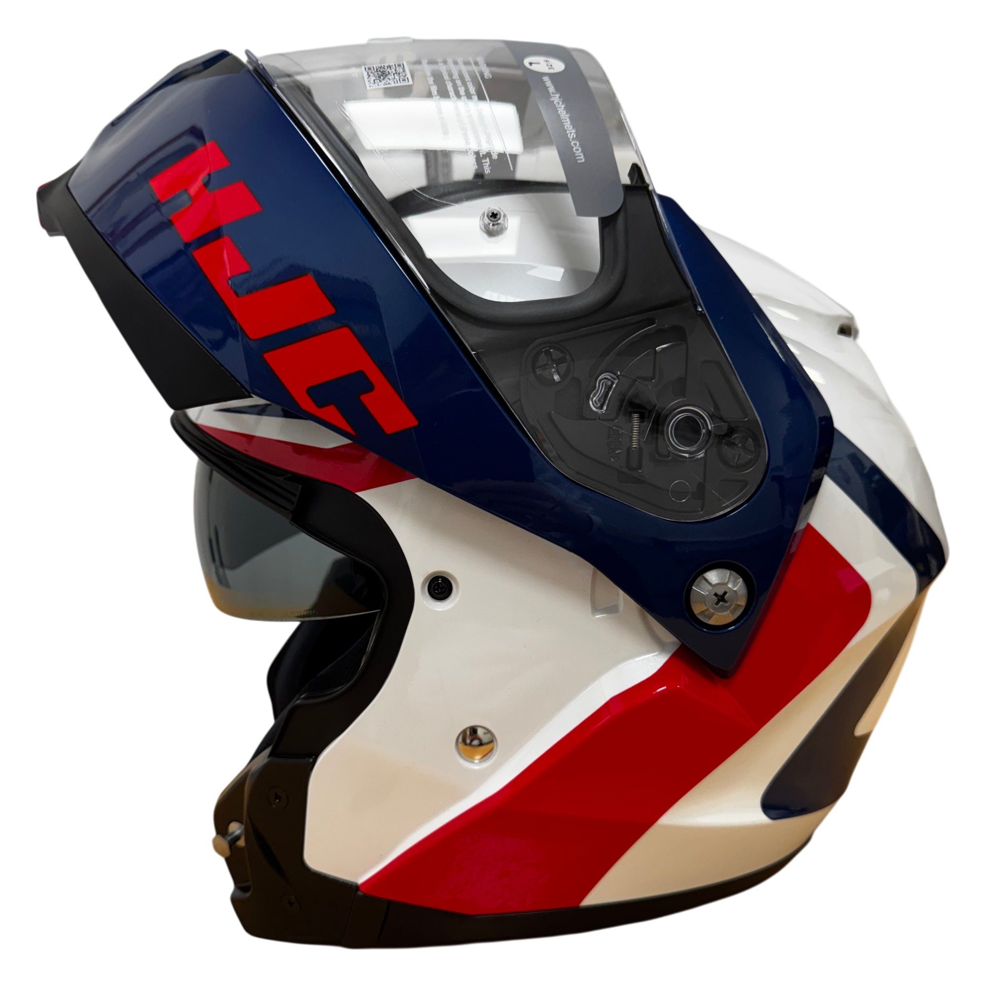 The HJC C91N Nepos flip up motorcycle helmet is a great choice for commuters and every riders looking for high end production, without the high end price! The lightweight helmet delivers superior fit and comfort, with an impressive Supercool interior and vents that keep you cool on a warm day. The flip mechanism is easy to use even while wearing gloves, and is operated with a single lever. An internal drop down visor helps battle sun glare, and the visor is Pinlock prepared (insert available separately). Available in a range of colours to match any riders gear, bike and personal taste!