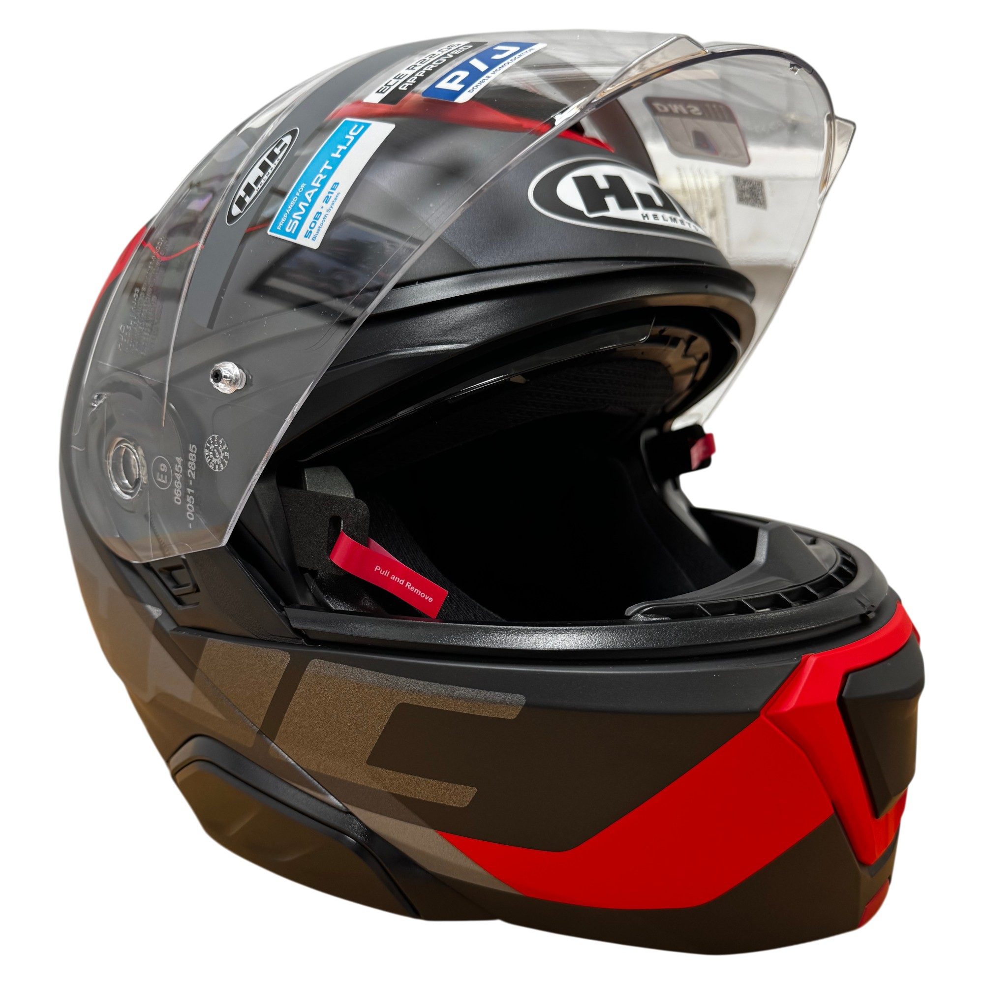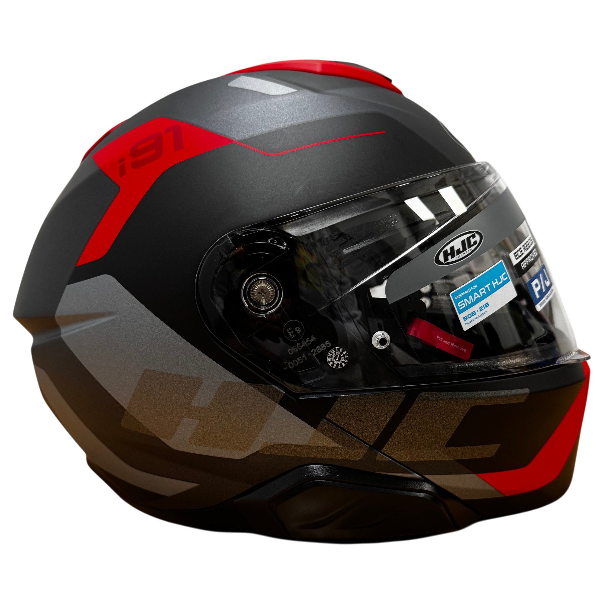 The HJC I91 Carst motorcycle helmet is a great choice for touring and commuter riders, offering a great mix of style and functionality. The modular HJC helmet is P/J rated, meaning you’re able to wear it closed for a full-face riding experience, as well as with the chin bar in it’s upright position. The HJC motorbike helmet has improved aerodynamic performance, resulting in a more smooth & stable ride and helping you stay focused on your adventure.