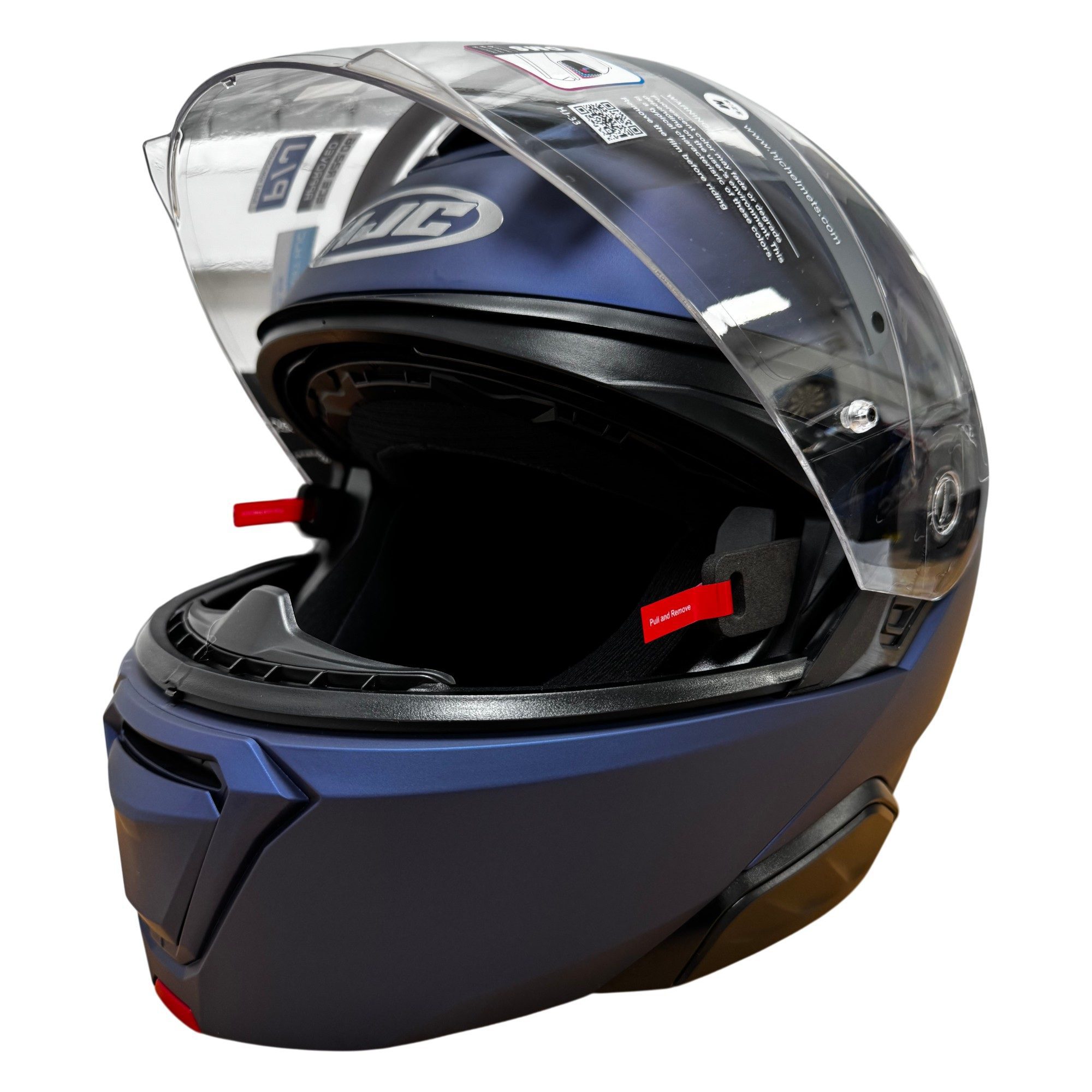 The HJC I91 plain motorcycle helmet is a great choice for touring and commuter riders, offering a great mix of style and functionality. The modular HJC helmet is P/J rated, meaning you’re able to wear it closed for a full-face riding experience, as well as with the chin bar in it’s upright position. The HJC motorbike helmet has improved aerodynamic performance, resulting in a more smooth & stable ride and helping you stay focused on your adventure.