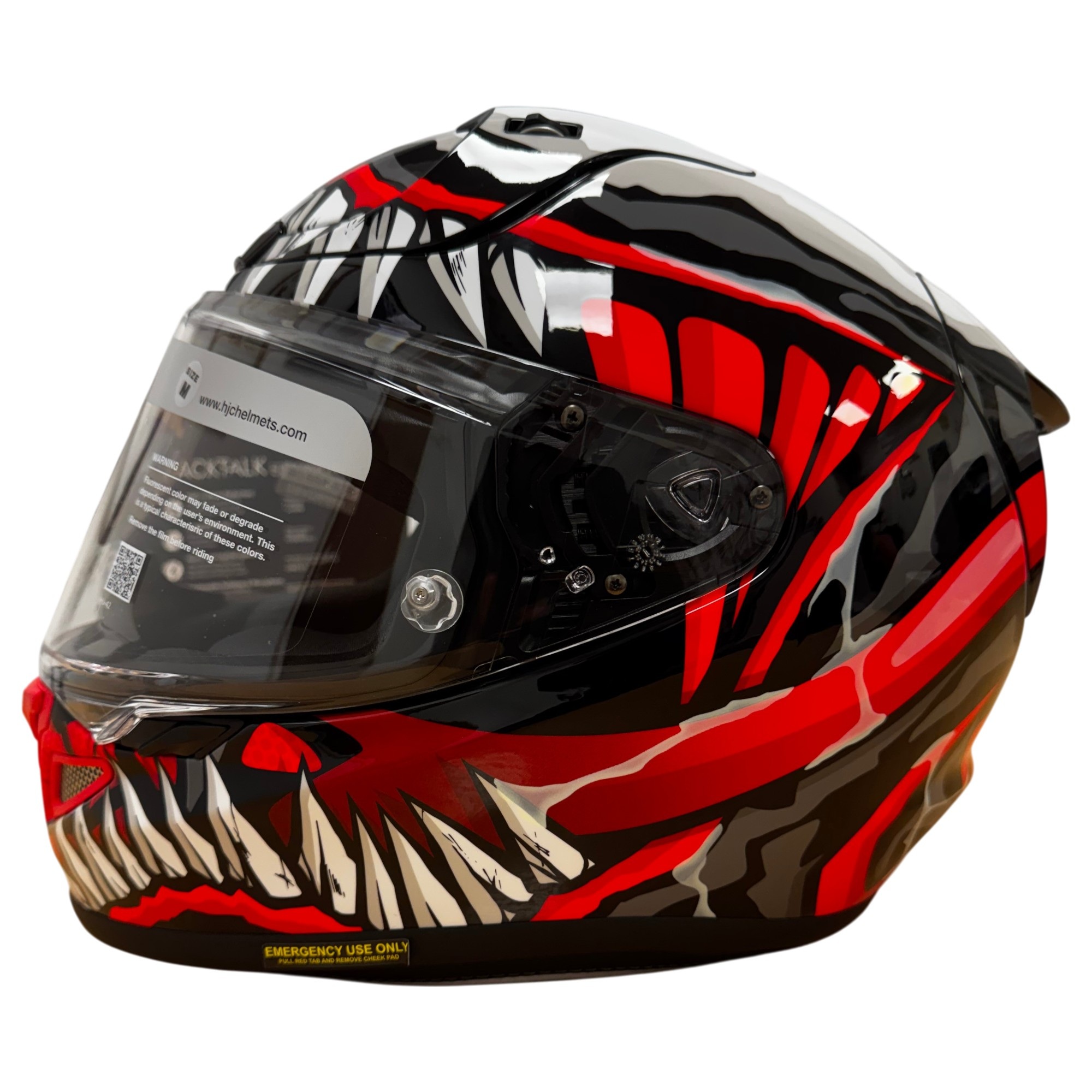 Introducing the HJC RPHA 12 Maximized Venom motorcycle helmet, a premium sport helmet model packed full of impressive features designed to enhance your riding experience. Its lightweight yet super strong PIM EVO multi-composite construction ensures comfort & safety on your journeys. The sleek aerodynamic design not only improves performance, but also enhances stability at high speeds. Reflective trimming on the cheek pads enhances visibility in low-light conditions, and an emergency pull tab adds an extra layer of safety, so no matter where you ride either the track or street you will be ensured the best performance possible.