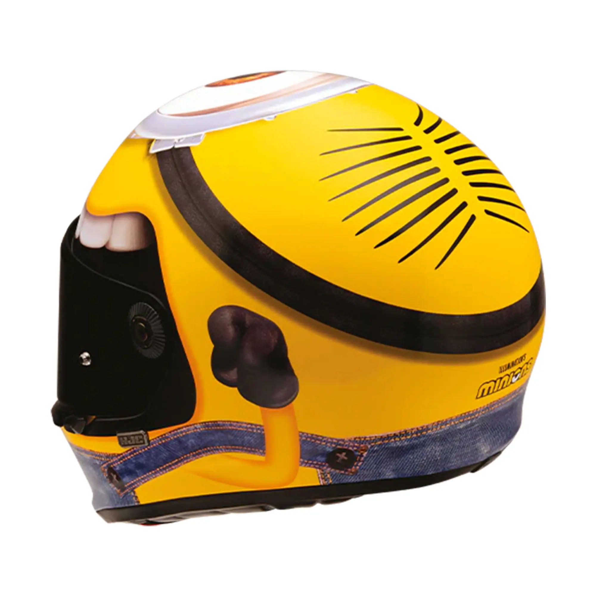 The HJC V10 Stuart Minions motorcycle helmet might have old school styling, but it certainly brings new age technical innovations that bring safety and comfort standards into the modern era. The full face retro HJC motorbike helmet captures our hearts, with styling that wouldn’t look out of place on a runway and will ensure you look your best, and feel your best at all times. A lightweight fiberglass shell delivers safety, aerodynamic performance and a comfortable ride, especially on longer journeys.