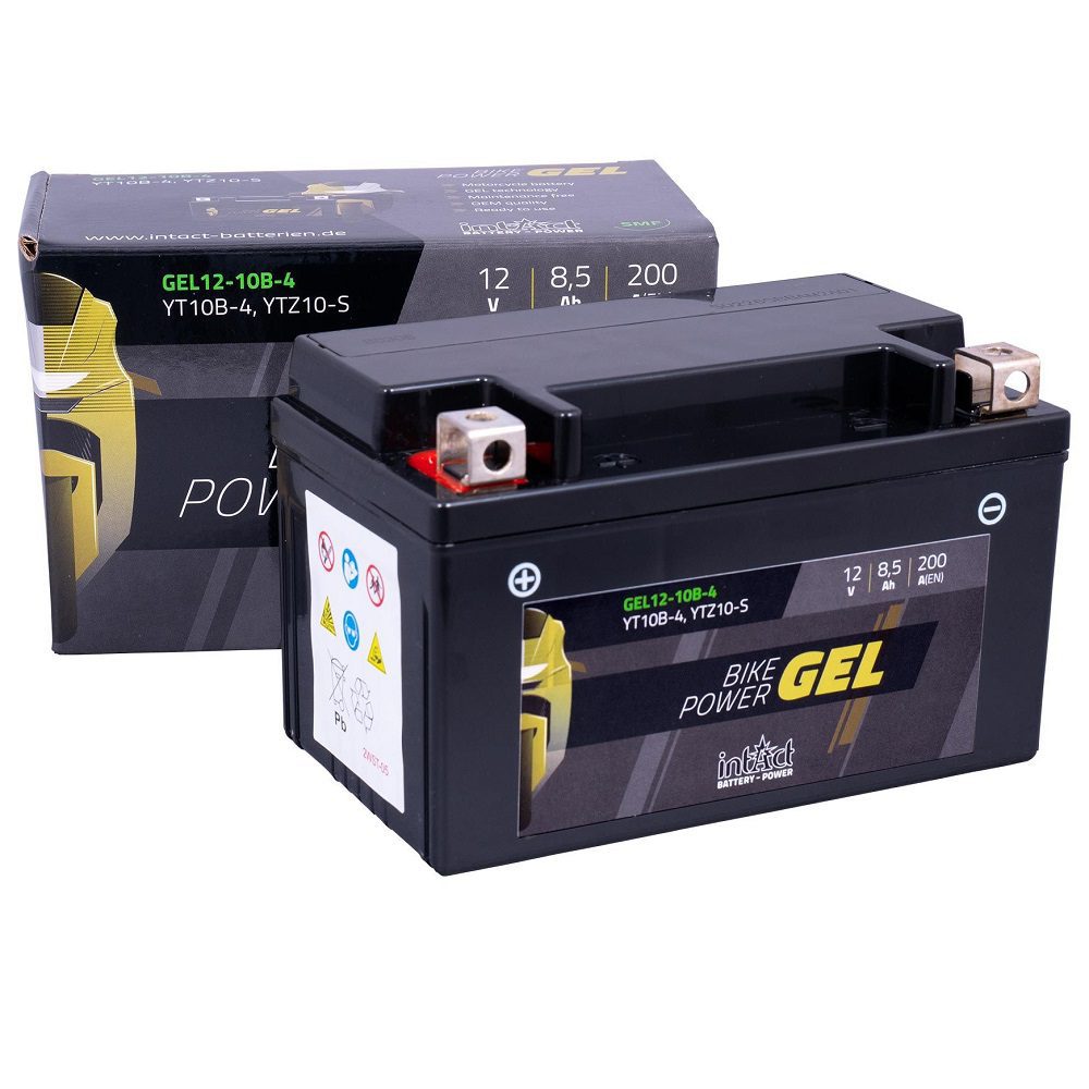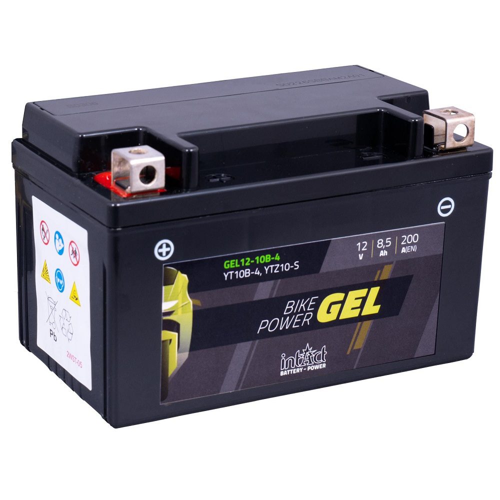 The Intact IT10B-4 Gel Motorcycle Battery is a fully sealed GEL battery, which is factory activated, supplied pre-charged and require no acid-filling to get started. A premium ready-to-use high performance battery, the GEL motorbike battery offers greater charge-cycle performance over AGM and SLA batteries of same case size. These are particularly suited for modern motorcycles and scooters with ABS and additional electrical devices. Offering 30% more starting performance than conventional flooded batteries, with great starting reliability and longevity all year round. GEL are completely maintenance-free and offer incredible vibration resistance.