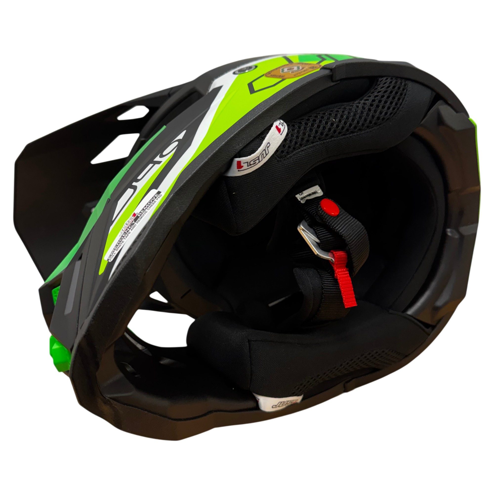 The Just1 J40 Flash motocross helmet is the perfect choice for off-road motorcycle riders looking for optimal blend of safety, style & performance. Just1 have spent countless hours into off-road research, aimed at improving technical features throughout which elevates your safety and comfort, no matter how hard you ride. An emergency release peak is designed to quickly remove itself during impact. When used with the integrated roost guard chin, you can also ensure you’re further protected from debris as you ride.