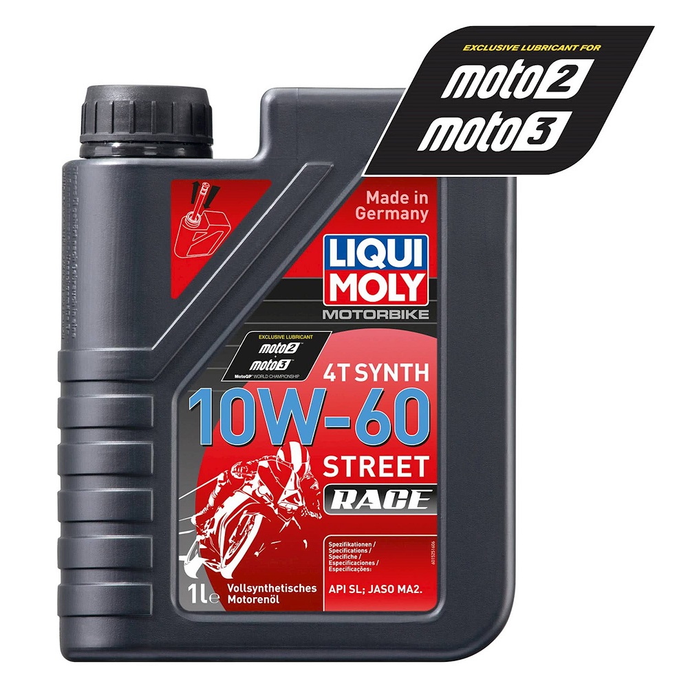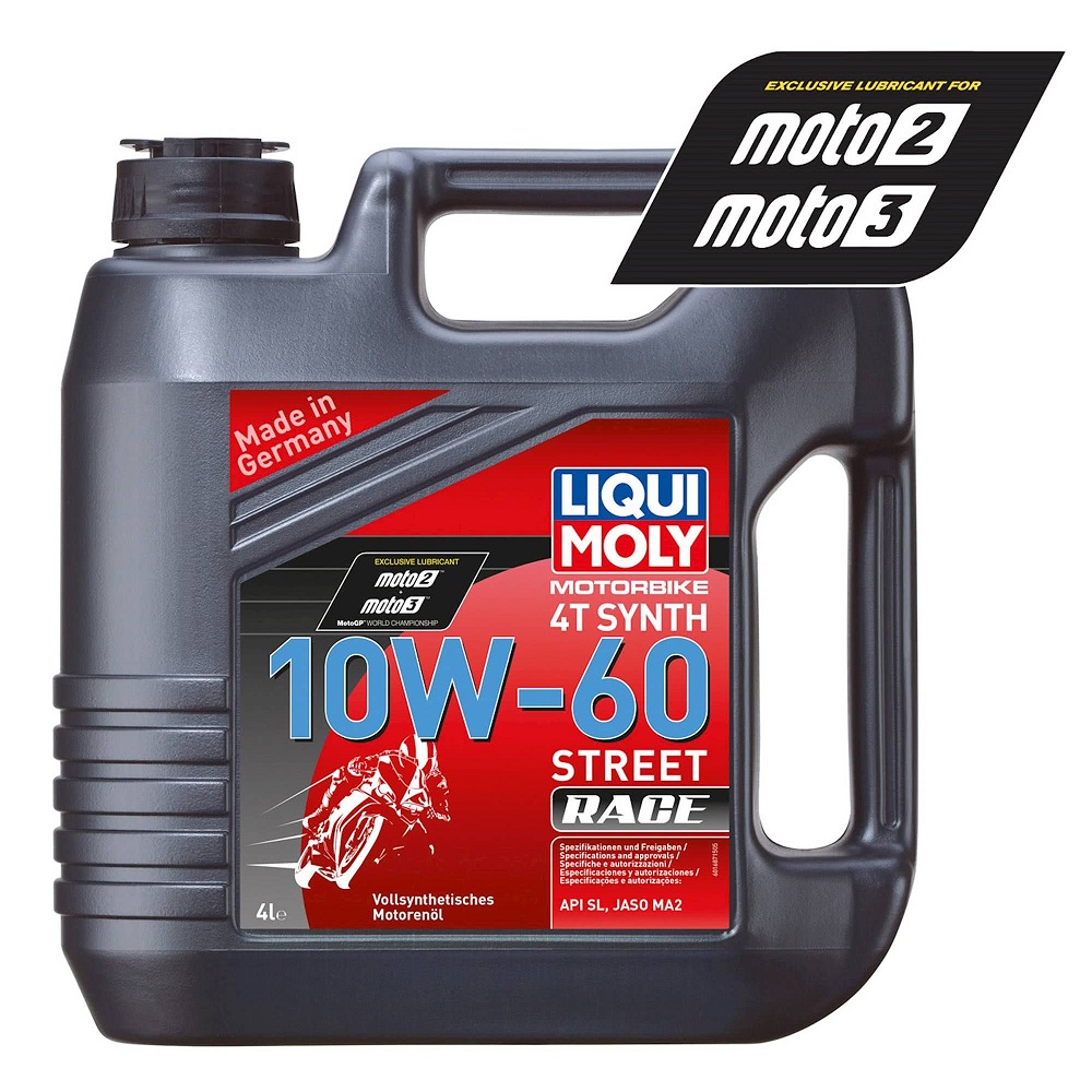 The Liqui Moly 4 Stroke Street 10W-60 Fully Synthetic Race Oil is a high-performance motor oil, perfect for enthusiasts. Ensures maximum performance and protection of the engine under all operating conditions. Optimum lubrication, outstanding engine cleanliness, excellent friction and minimum wear are just as much taken for granted as gentle clutch engagement and disengagement and gear shifting. That makes a big difference to driving enjoyment! Tested on engines with catalytic converters. Tested on racing machines.