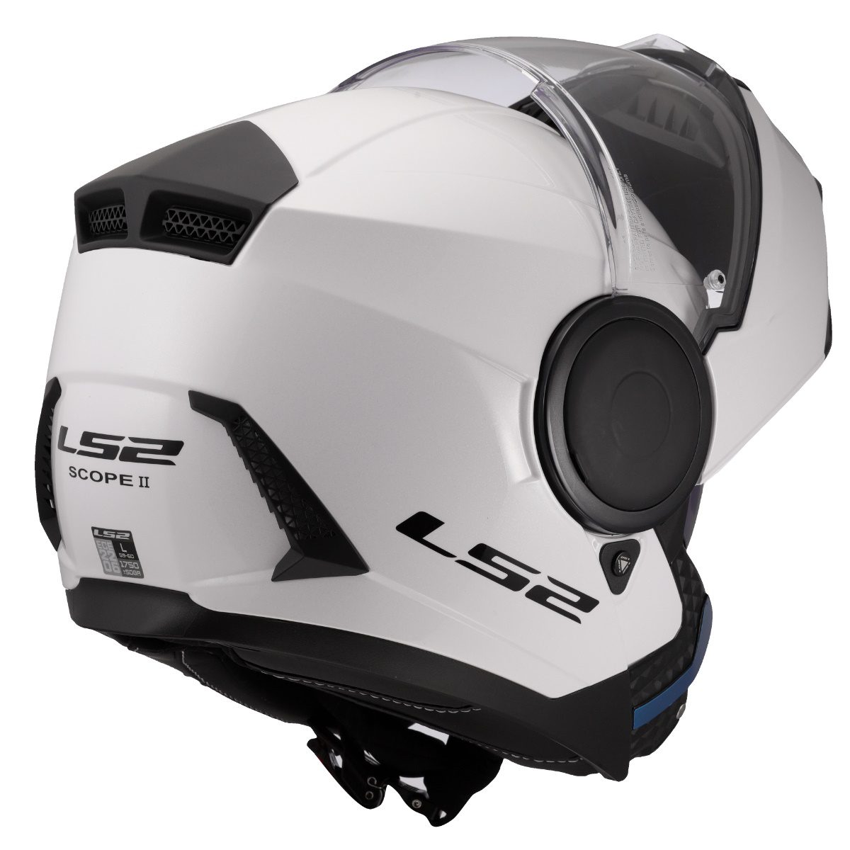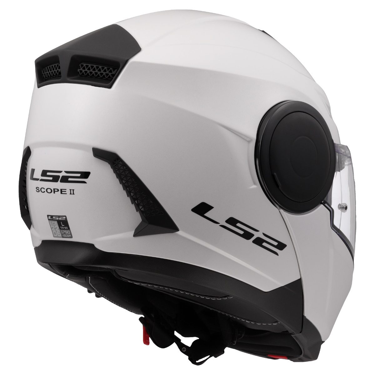 The LS2 FF902 Scope II plain motorcycle helmet is a great choice for both commuters and touring riders. Comfortable and safe, the LS2 Scope flip up motorcycle helmet features a new chin-guard locking system. The modular riding helmet is ECE 22.06 certified, and also P/J homologated. Thanks to this, you can ride with complete peace of mind knowing that the helmet has performed whether the chin bar is open or closed.