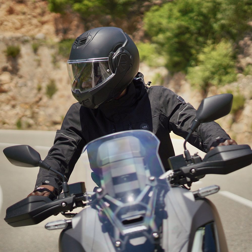 A revolutionary 180 degree swing-around chin bar which provides excellent lateral visibility and allows you to ride with confidence. Certified as both a full face and a open face helmet, the super lightweight (1650g) modular motorbike helmet lets you ride how both you and the British weather want you too.