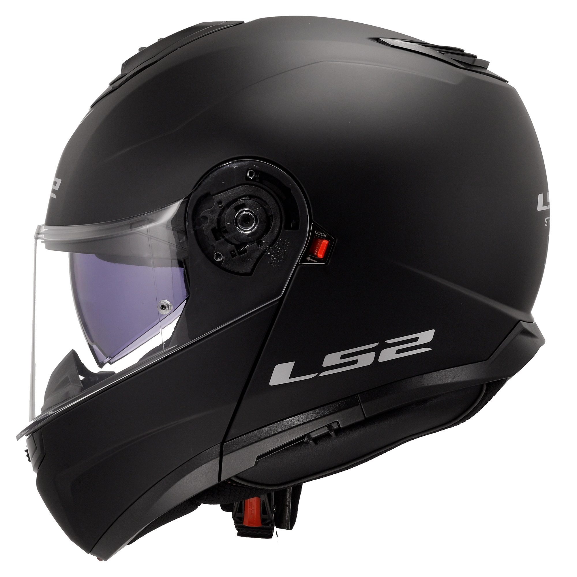 The LS2 FF908 Strobe II plain flip up motorcycle helmet is a comfortable, stylish and dependable motorbike helmet suited for everyday use. The visor is constructed using 3D optically correct ‘A Class’ polycarbonate, ensuring maximum clarity and vision at all times.