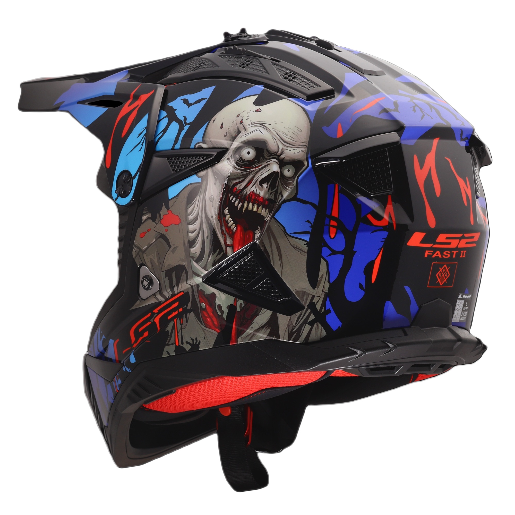 LS2 MX708 Fast II Zombie Motorcycle Helmet – Black/Red/Blue