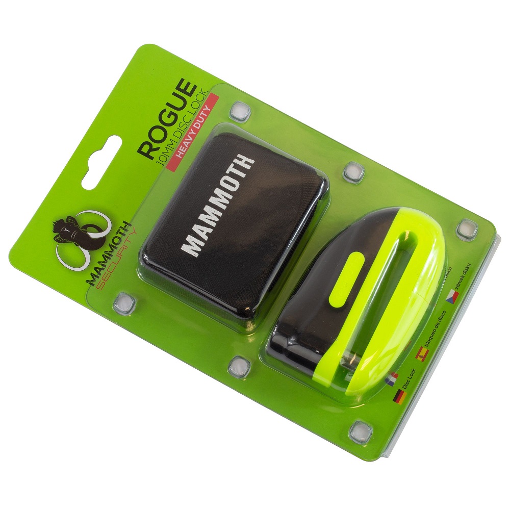 The Mammoth rogue yellow motorcycle disc lock 10mm lock will keep your motorbike or scooter protected and deter and thief’s!