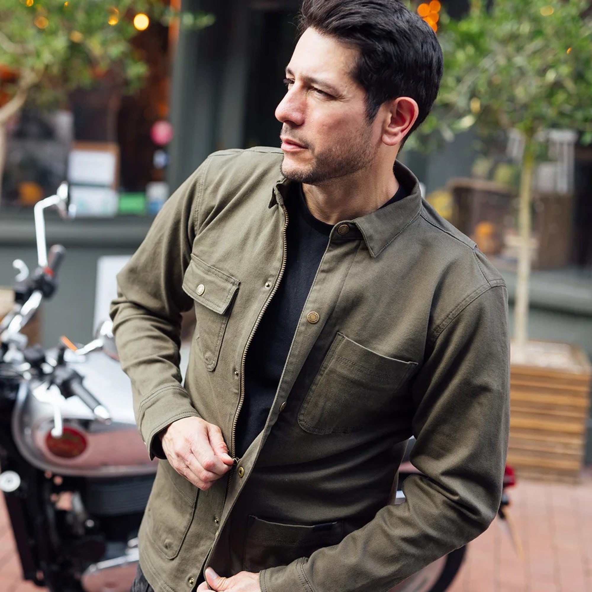 Introducing the Merlin Carter D3O Ghost Motorcycle Riding Shirt with an iconic French cult workwear style, the 4 pocket design is instantly recognisable. Riders benefit from the 4 way active stretch cotton which makes the jacket comfortable both in a riding position and off the bike. D3Oโ€™s unique impact print, fit and forget armour is pre-fitted to the shoulders and elbows with the brand new Ghost back protector insert. This style, thanks to an innovative fabric weave is more than safe for riding, achieving CE AA rated protection.