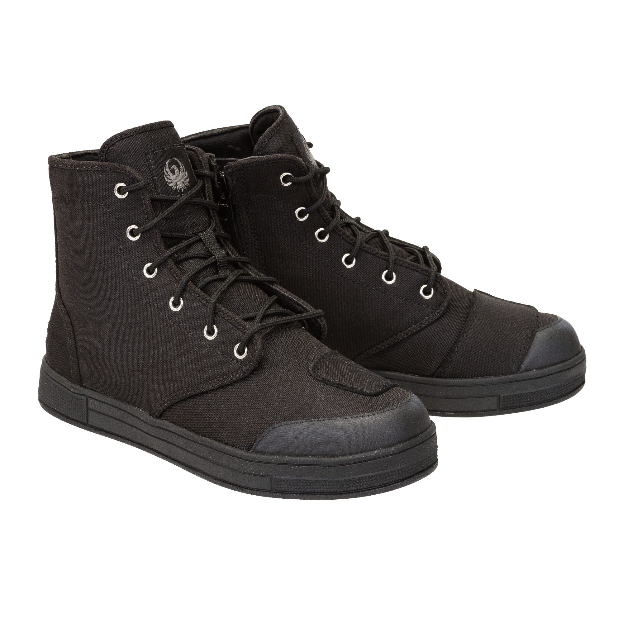 Entry is easy, with an inside YKK zipper at the ankle, riders can open the boot nice and wide and lace up to secure. Behind the canvas, D3O’s hardening on impact protection has been utilised to ensure further rider protection. This short height boot fits in anywhere and with three colour combinations, there’s a colour to suit any jean or riding trouser.