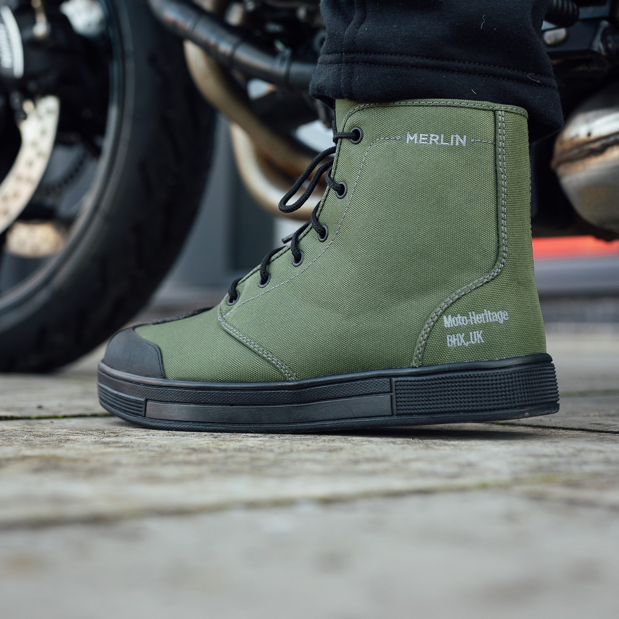 Merlin Knots D3O Canvas Motorcycle Boots – Olive