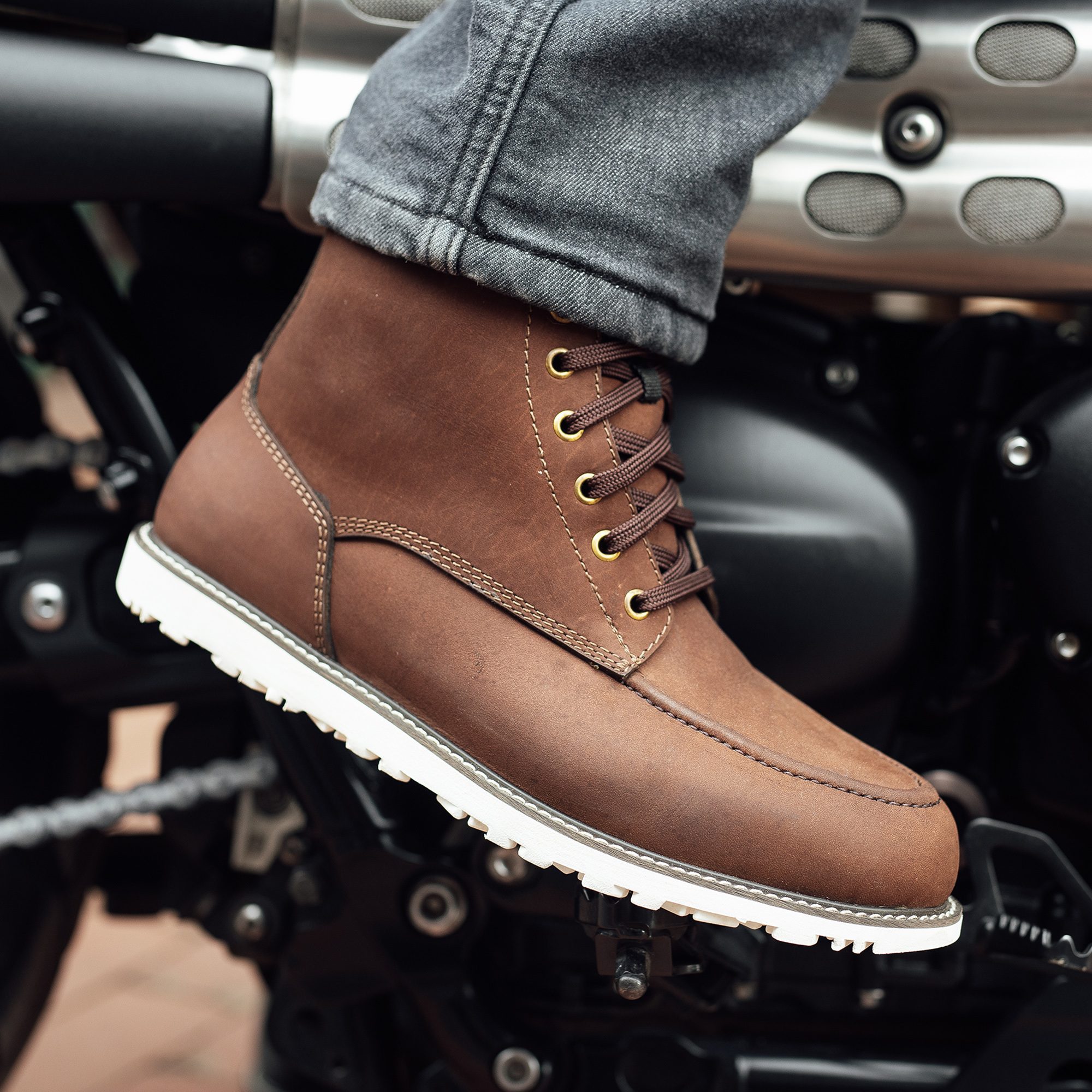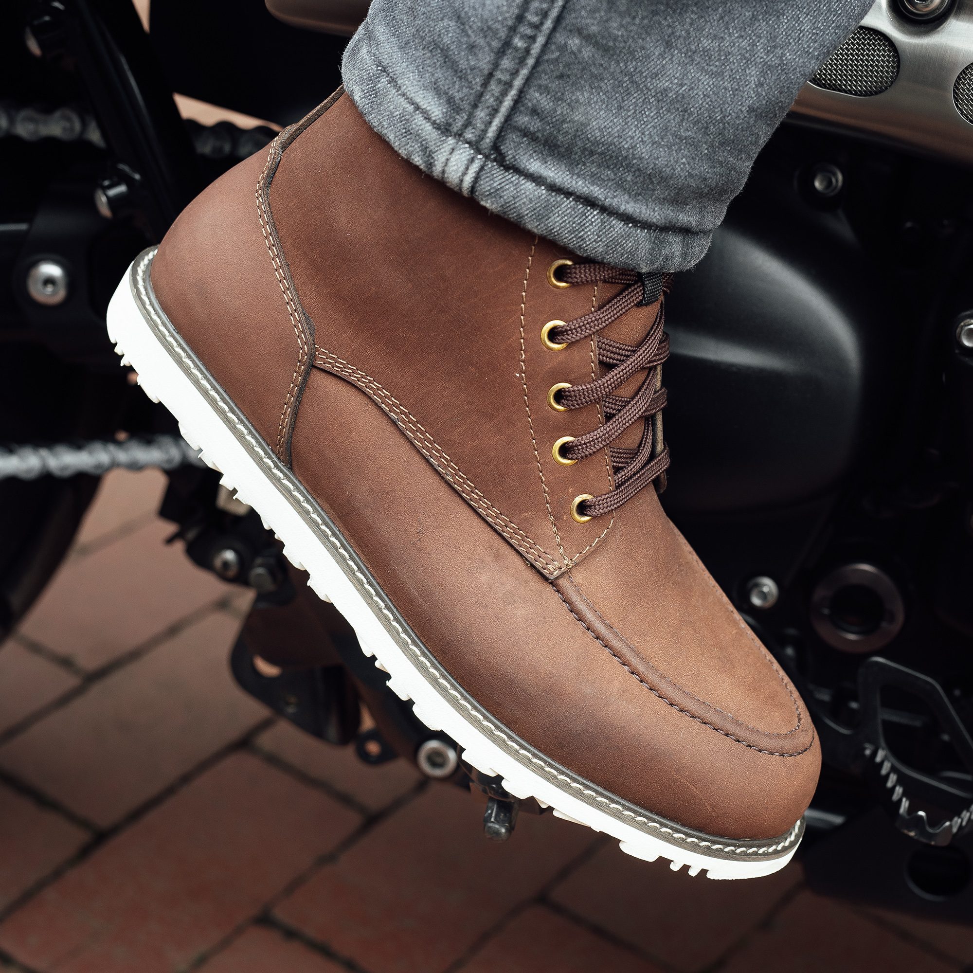 Blending timeless workwear design with modern riding performance, this moccasin toe motorcycle boot is a natural fit within Merlin’s Heritage Collection. Inspired by classic British craftsmanship, the Merlin Worker D3O Waterproof motorbike boot features a traditional moccasin toe and a full grain leather upper that ages beautifully over time.