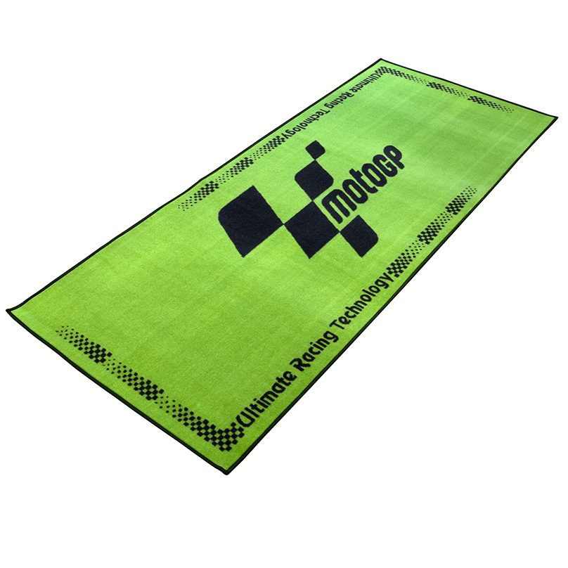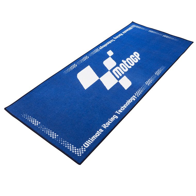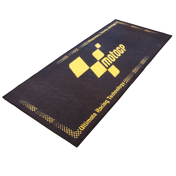 The MotoGP Workshop mat is perfect for riders looking to show off their bike in the workshop, garage or even a showroom! A nylon fibre construction is non-slip, oil and water resistant with PVC backing, as recommended by affiliated racing bodies.
