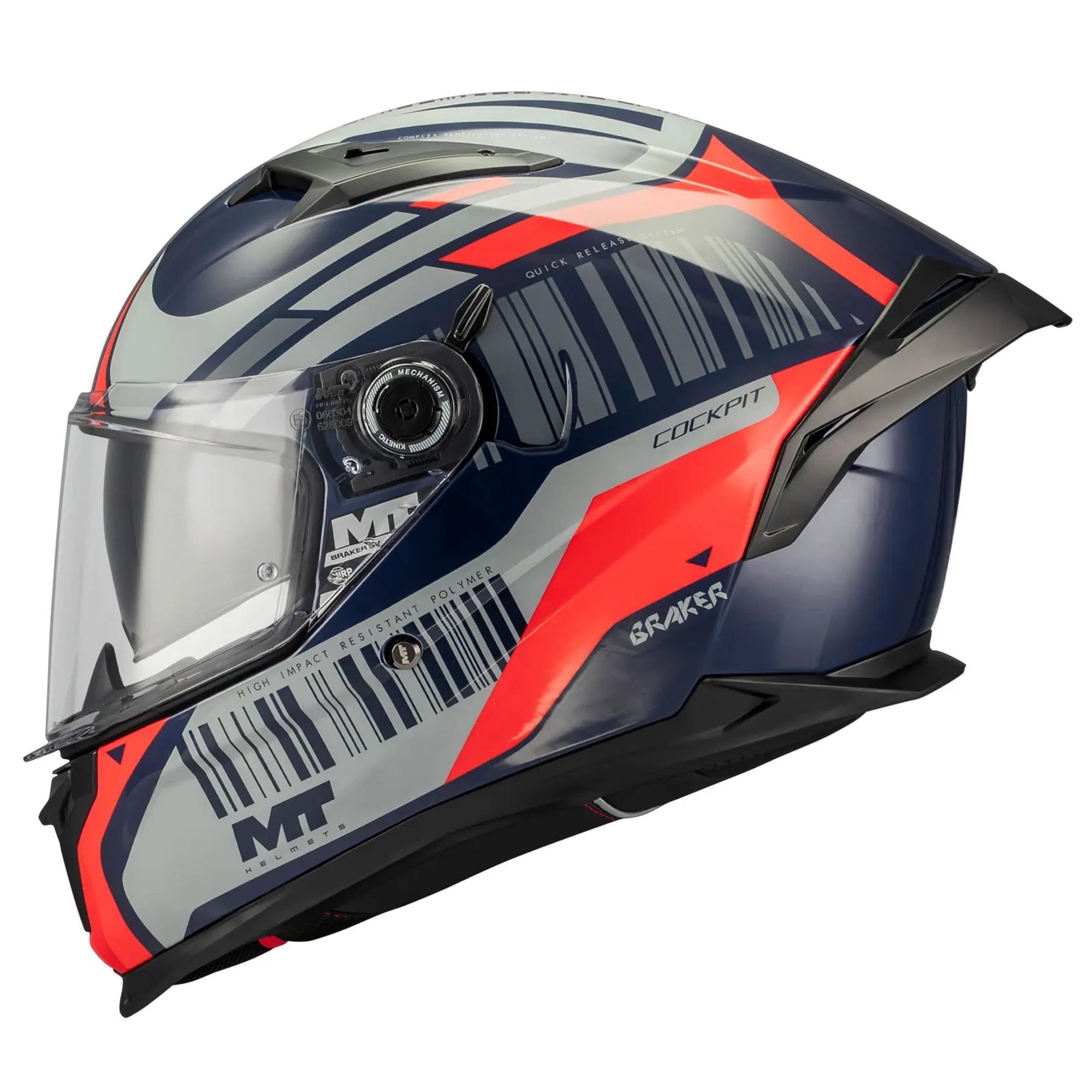 The MT Braker Cockpit full face motorcycle helmet boasts impressive innovation designed to improve your riding experience. It represents an entry-level model in the sport-touring segment featuring cutting-edge solutions, such as the standout visor attachment system, a housing for the UCS Bluetooth intercom (available separately), and a quick-actuating sun visor.