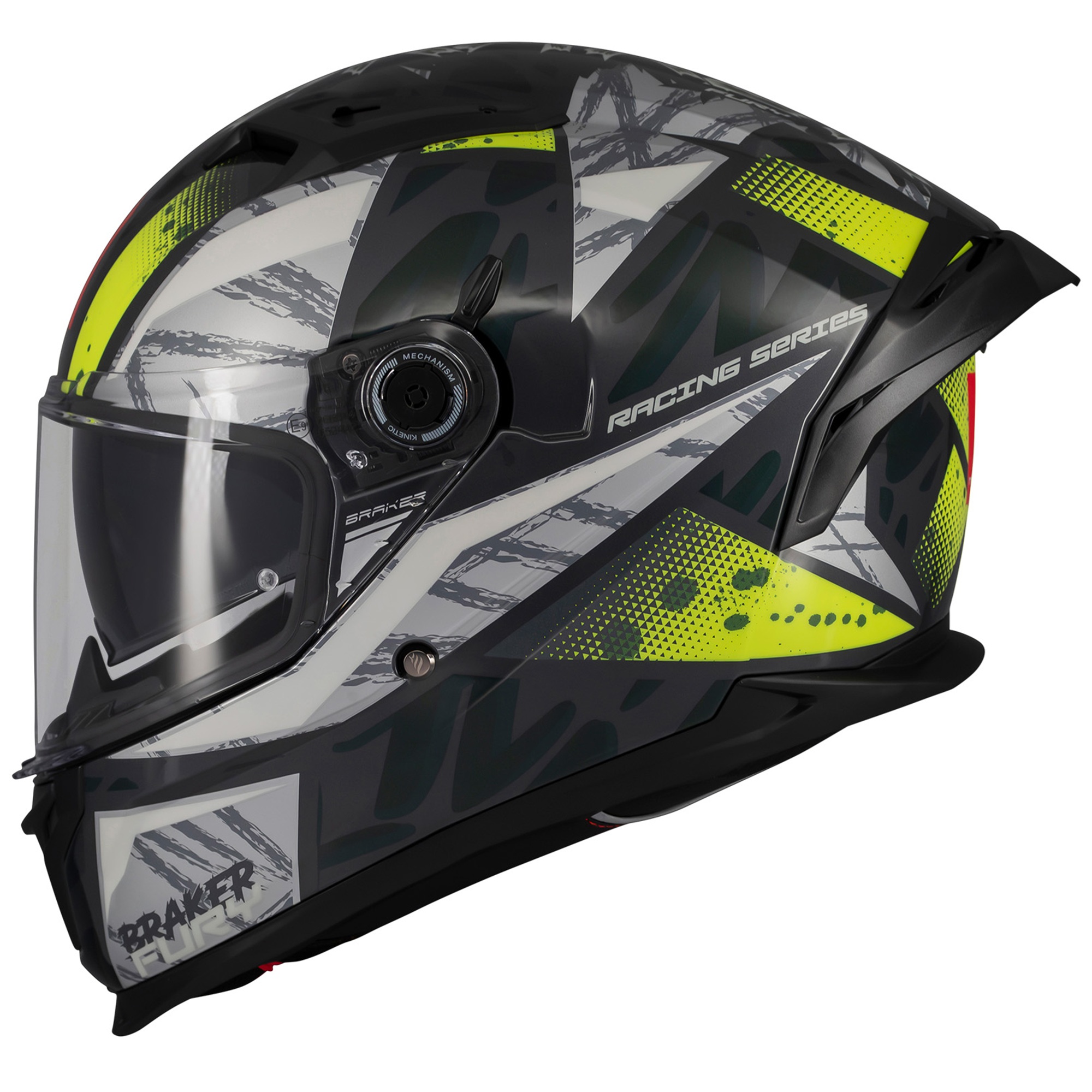 MT Braker Fury Motorcycle Helmet – Fluo
