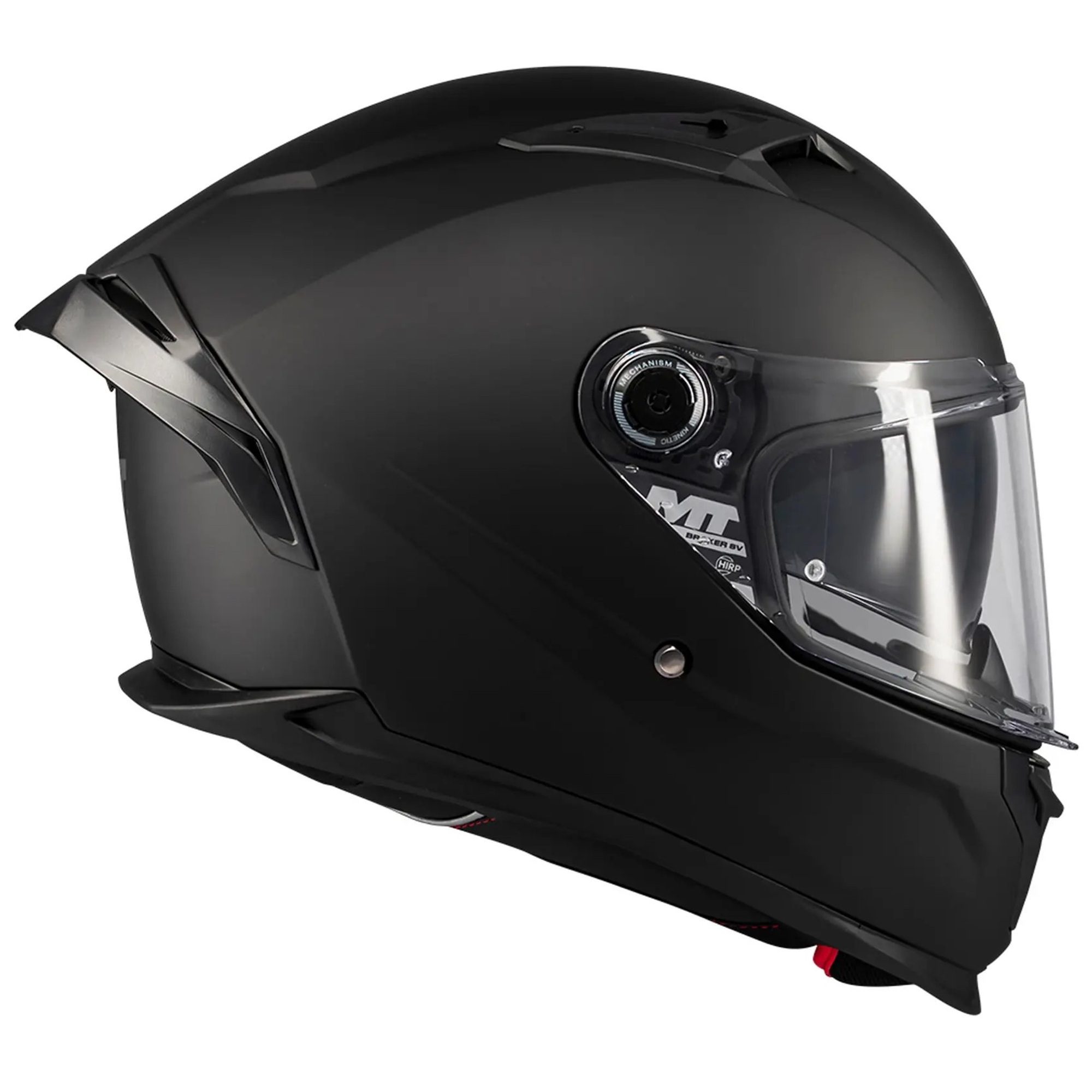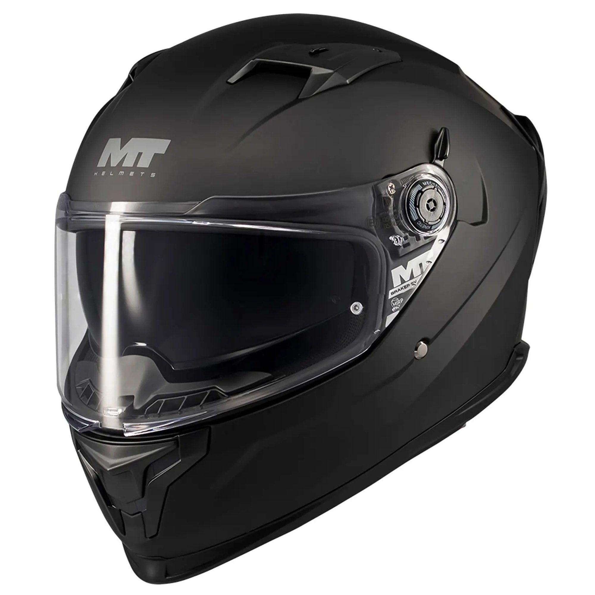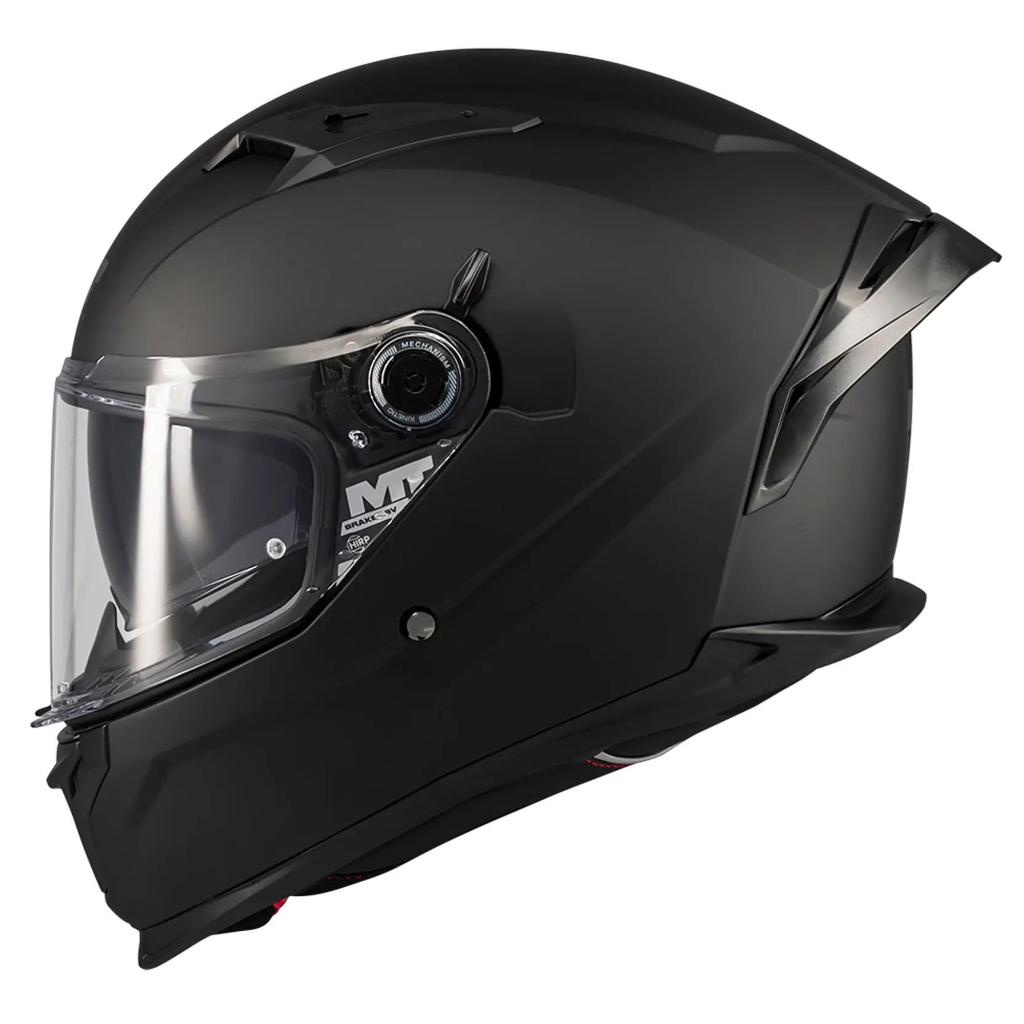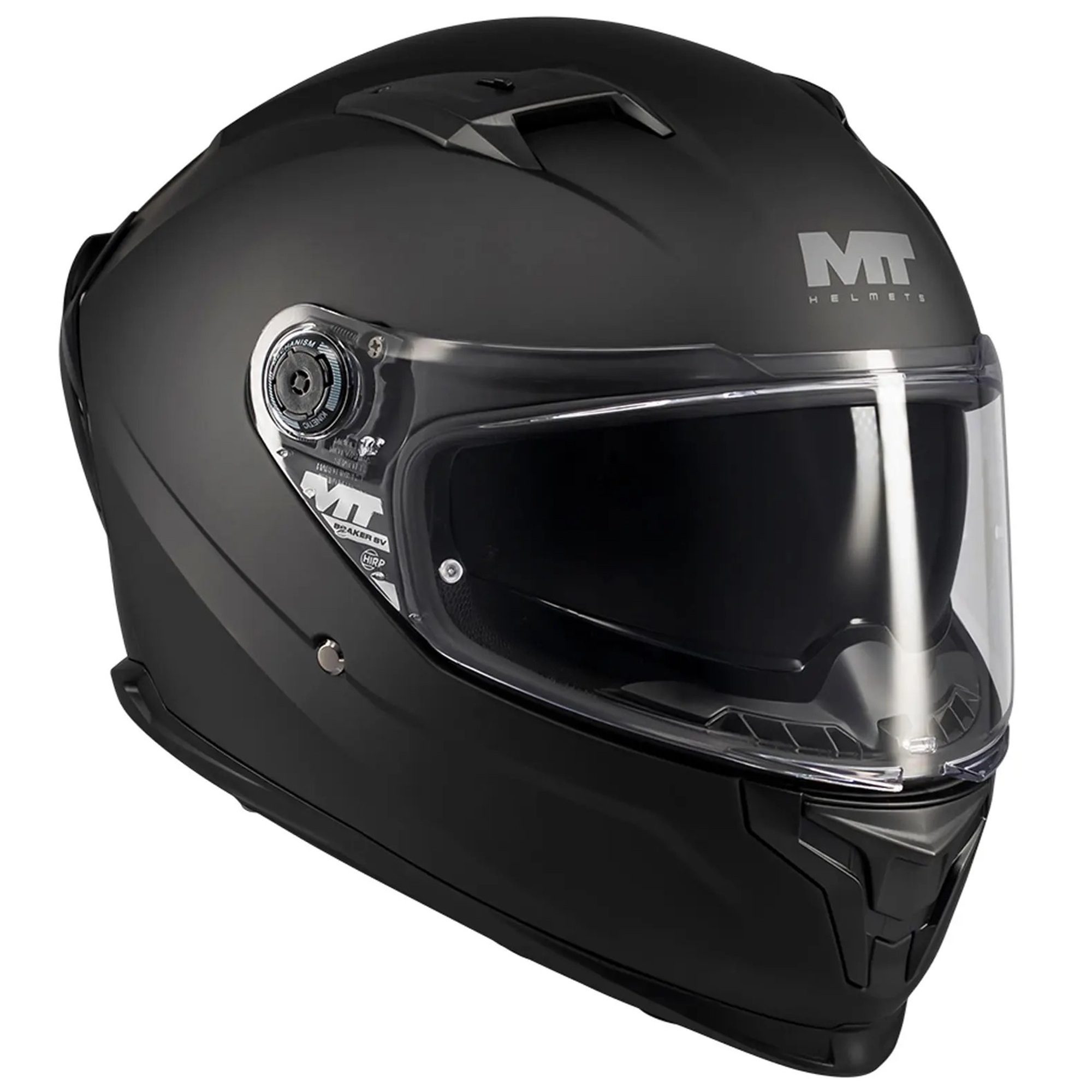 The MT Braker Pure full face motorcycle helmet boasts impressive innovation designed to improve your riding experience. It represents an entry-level model in the sport-touring segment featuring cutting-edge solutions, such as the standout visor attachment system, a housing for the UCS Bluetooth intercom (available separately), and a quick-actuating sun visor.