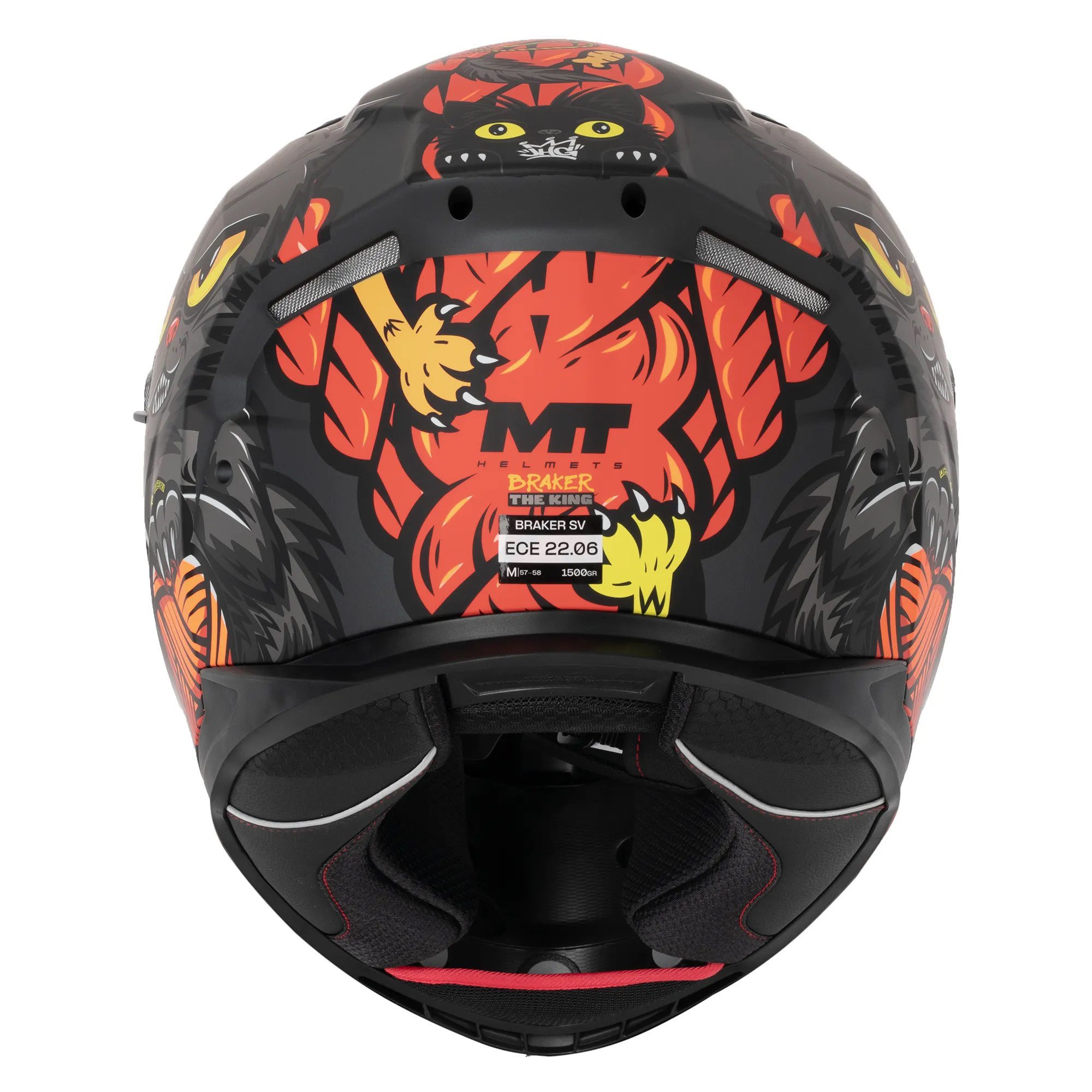 The MT Braker is a next-generation motorbike helmet model designed to meet ECE 22.06 standards from its inception, ensuring the highest level of safety at an affordable price point. It boasts a triple front ventilation system and a removable rear spoiler with an air extraction system to enhance interior airflow.