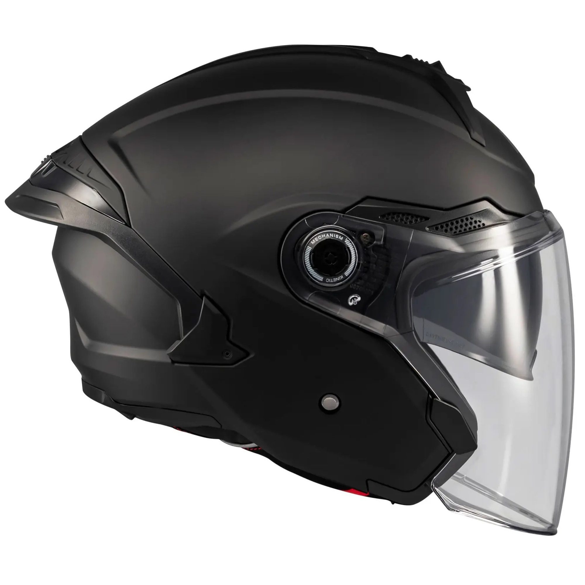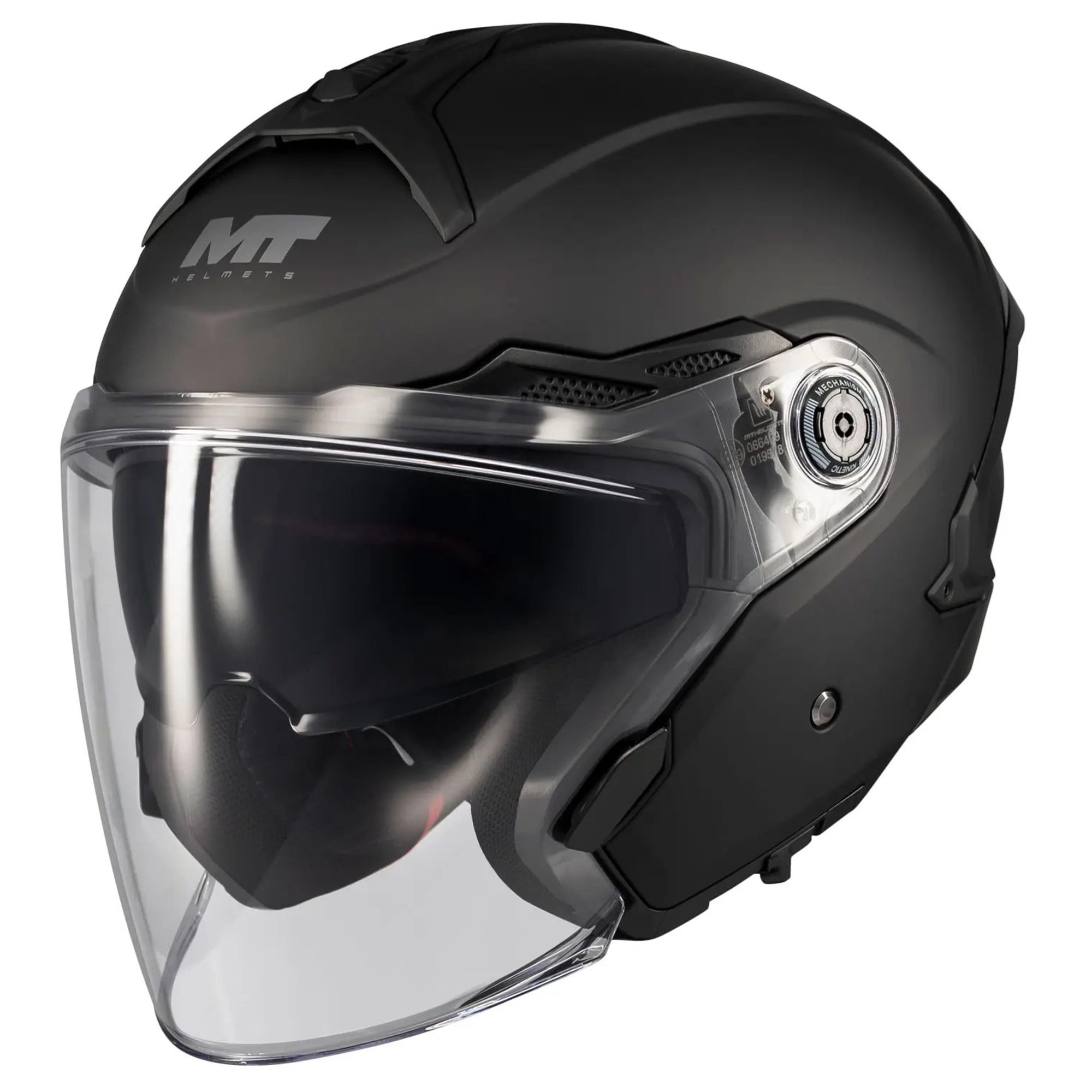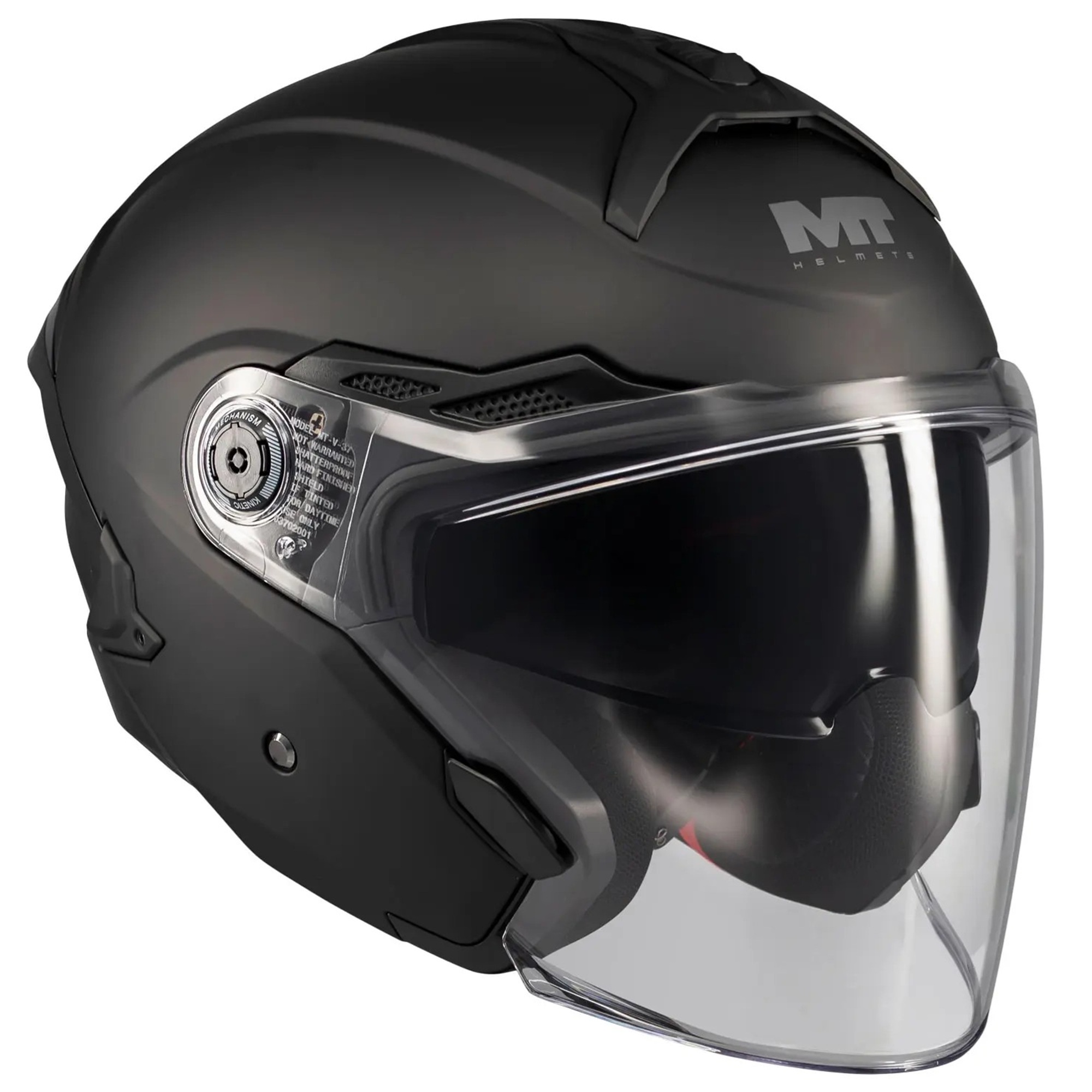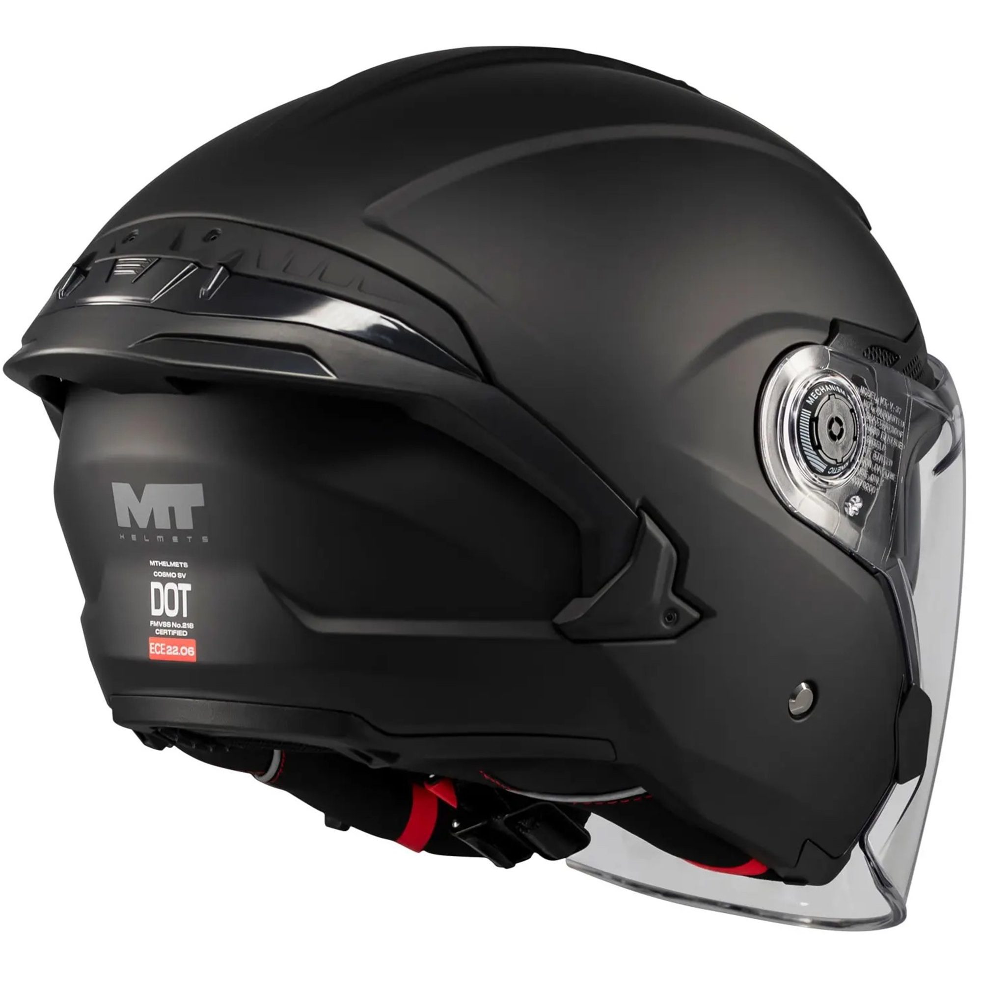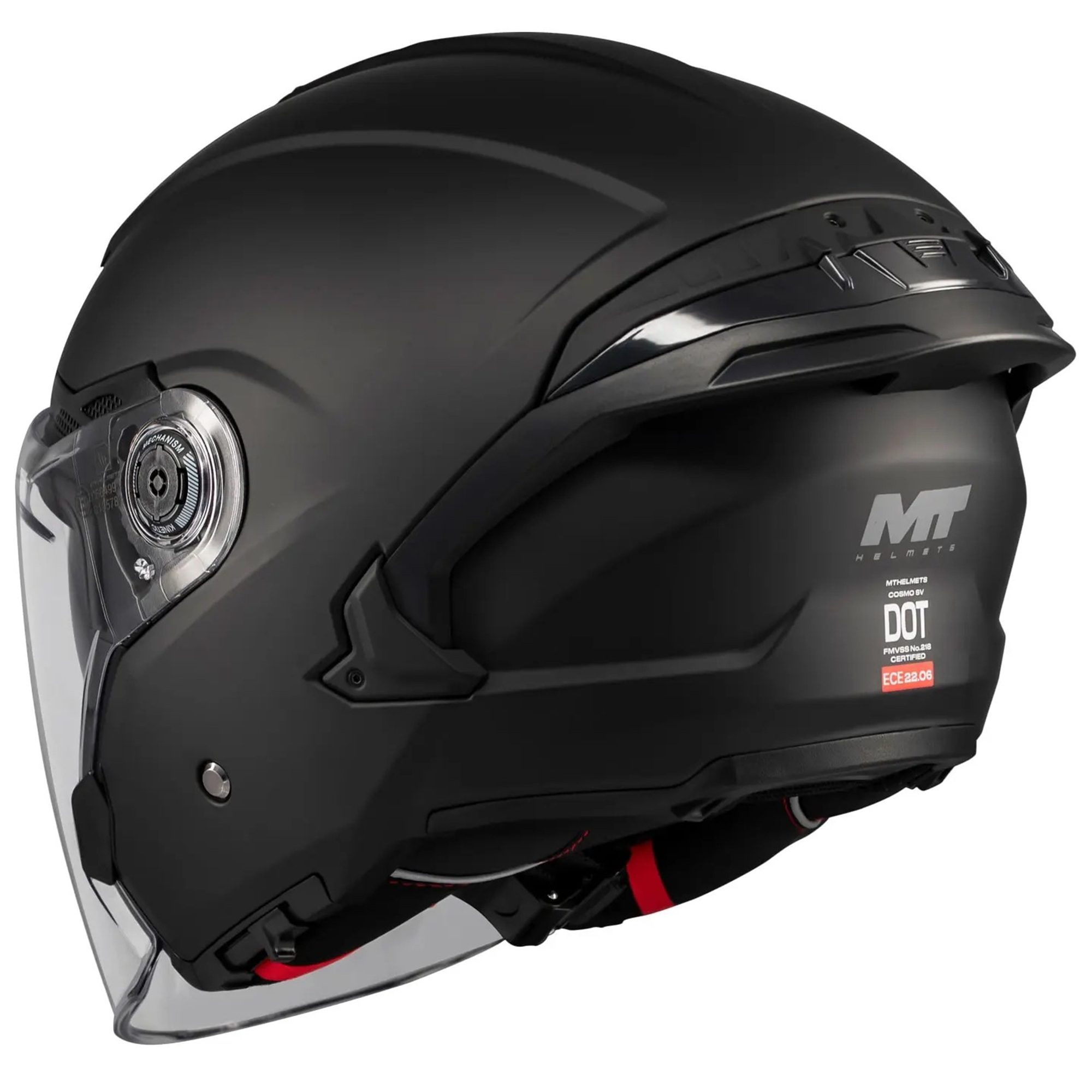 The new MT Cosmo Pure motorcycle helmet is a jet scooter helmet designed with the latest safety and comfort specifications evolved by the famous Spanish helmet manufacturer. The open face motorcycle helmet offers excellent safety performance and was designed to exceed the ECE 22.06 safety standards.