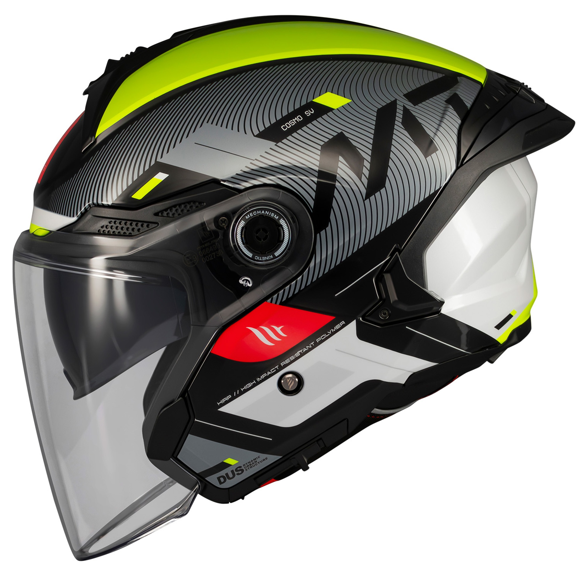 The new MT Cosmo Silence motorcycle helmet is a jet scooter helmet designed with the latest safety and comfort specifications evolved by the famous Spanish helmet manufacturer. The open face motorcycle helmet offers excellent safety performance and was designed to exceed the ECE 22.06 safety standards.