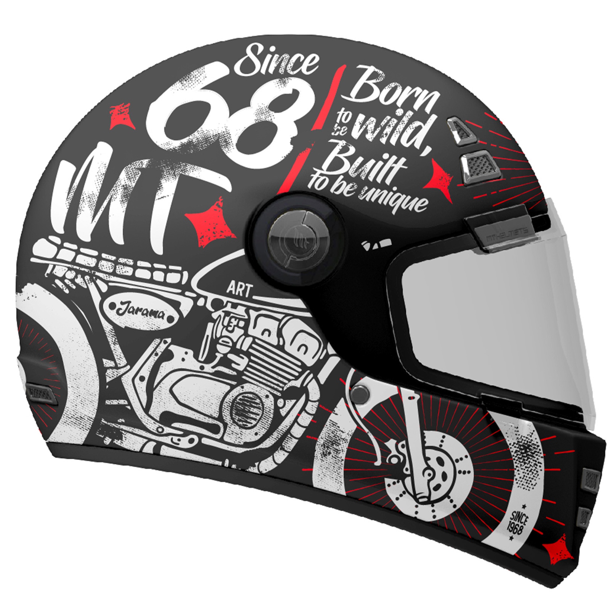 The original, updated. The MT Jarama Art motorcycle helmet is a helmet that represents, like no other, the history, tradition and experience in manufacturing that MT Helmets treasures. After more than 50 years protecting motorcycle riders, the Jarama returns to the range with improvements to pay tribute to the brand that gave it birth.