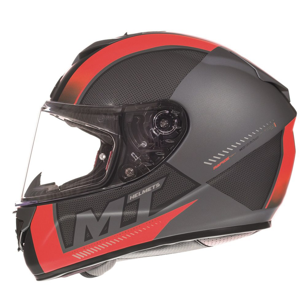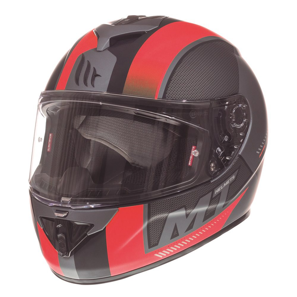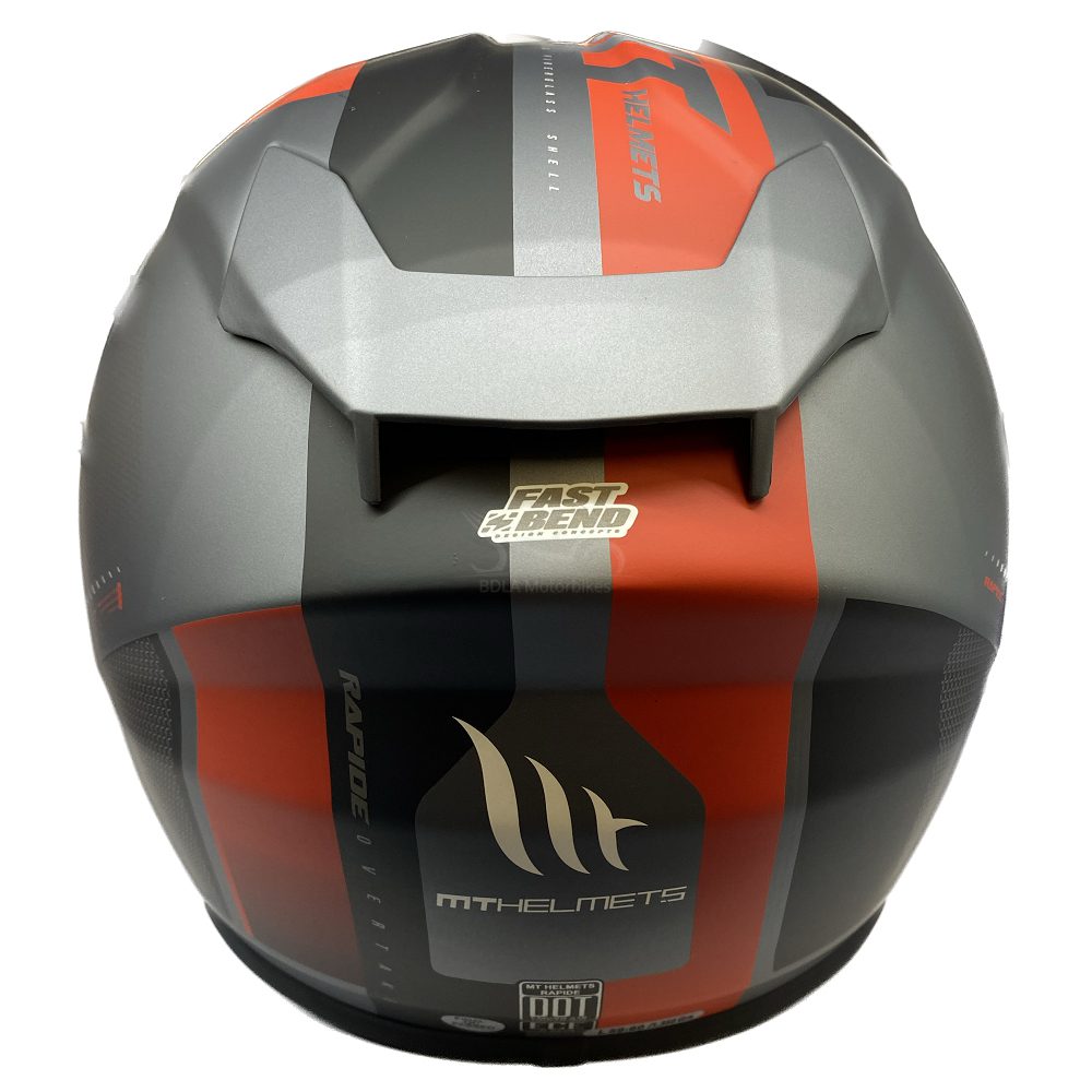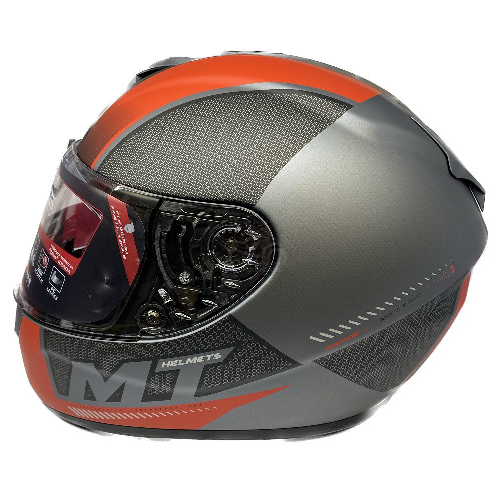 The MT Rapide Overtake motorcycle helmet is the perfect choice for the long distance rider. Available in 2 shell sizes, a lightweight fiberglass construction and rear spoiler aid stability and help reduce fatigue while the improved inner comfort liner is removable and washable. To reduce fogging and mist, a lockable Pinlock “Max Vision” visor and insert are also included. Tested to pass all the major global safety standards the MT Rapide motorcycle helmet offers maximum head protection.