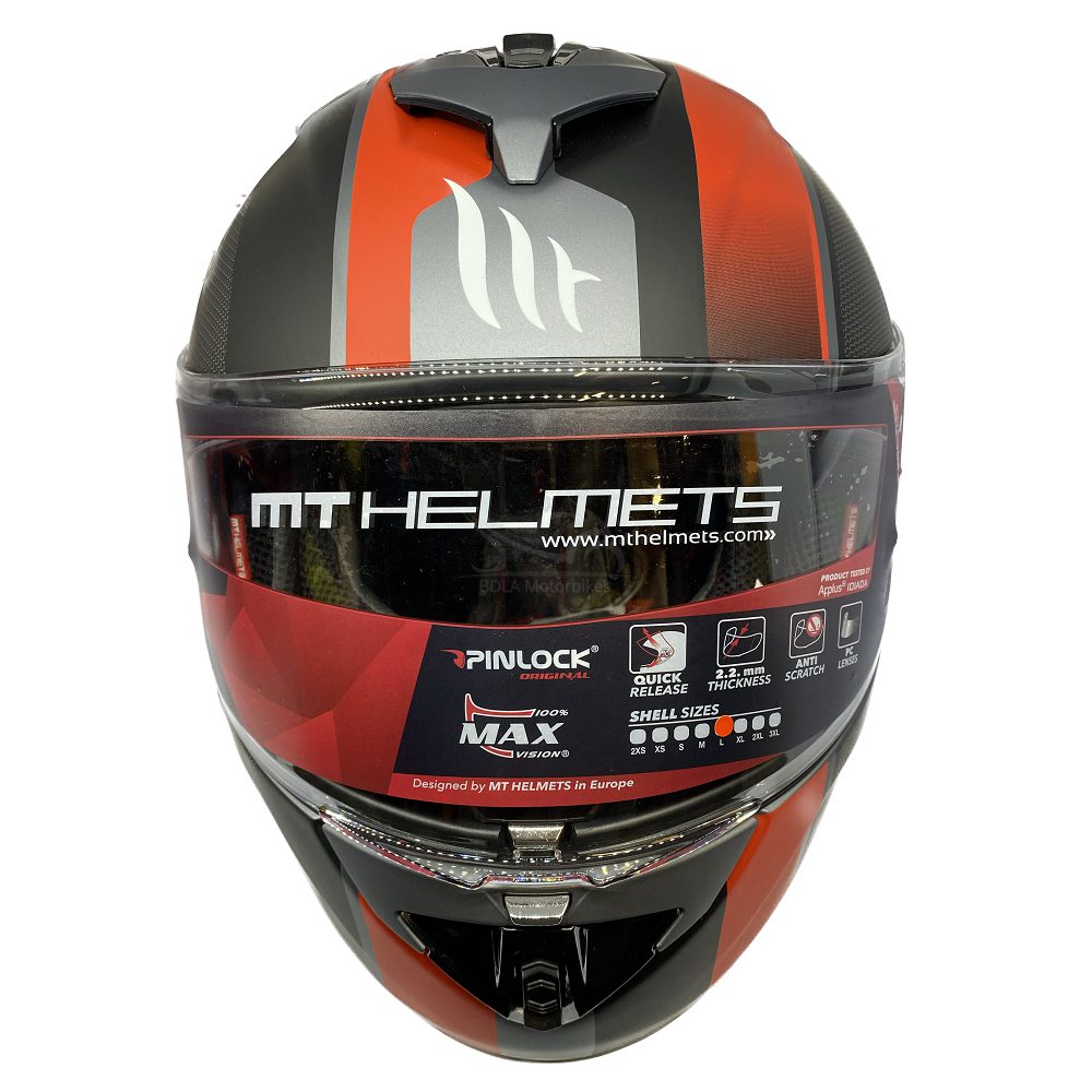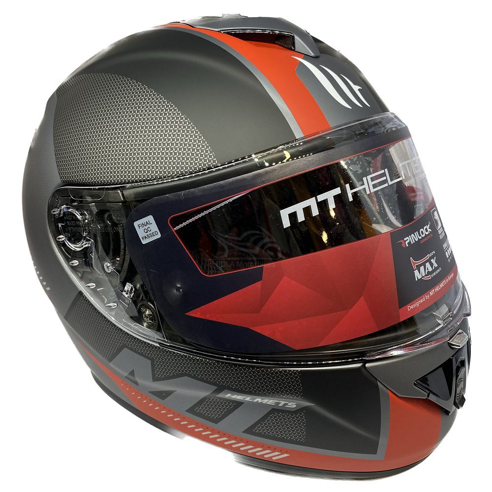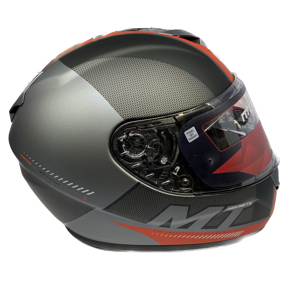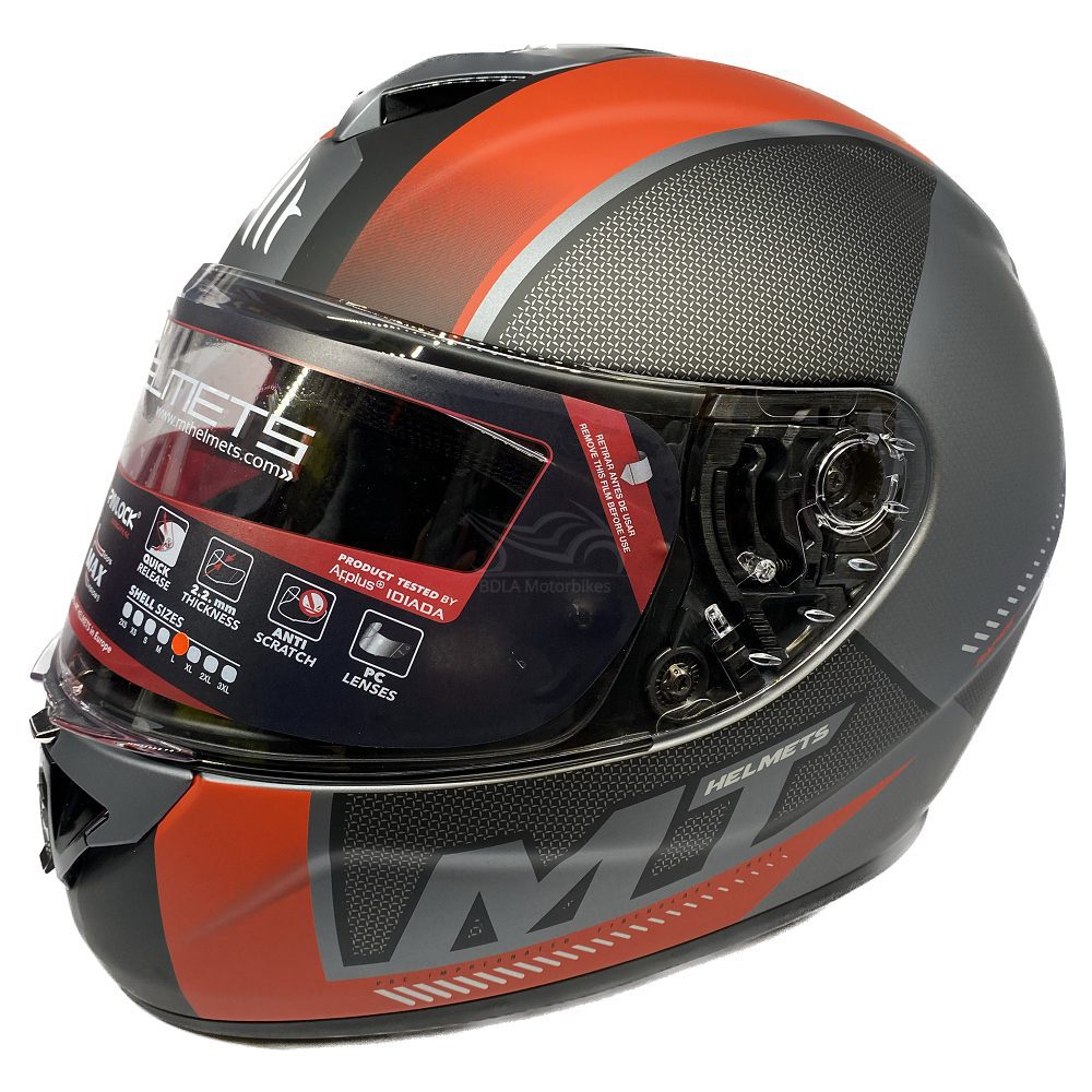 The MT Rapide Overtake motorcycle helmet is the perfect choice for the long distance rider. Available in 2 shell sizes, a lightweight fiberglass construction and rear spoiler aid stability and help reduce fatigue while the improved inner comfort liner is removable and washable. To reduce fogging and mist, a lockable Pinlock “Max Vision” visor and insert are also included. Tested to pass all the major global safety standards the MT Rapide motorcycle helmet offers maximum head protection.