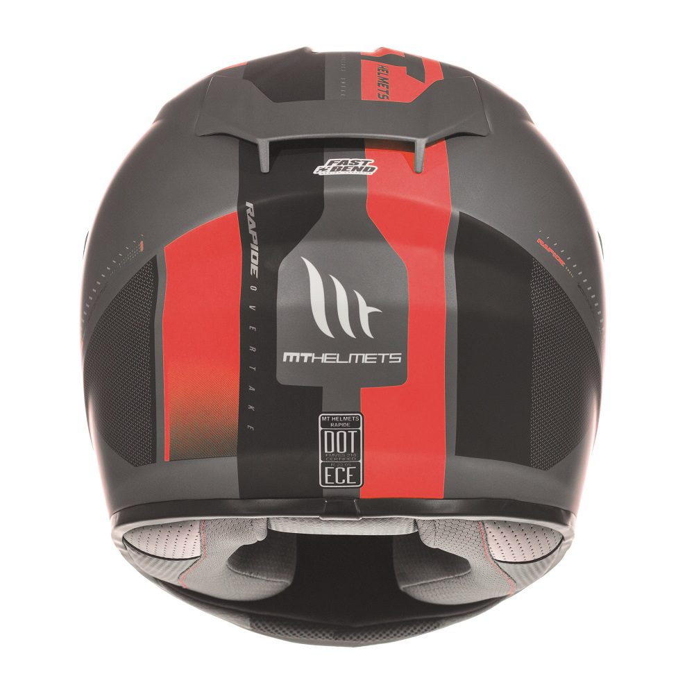 The MT Rapide Overtake motorcycle helmet is the perfect choice for the long distance rider. Available in 2 shell sizes, a lightweight fiberglass construction and rear spoiler aid stability and help reduce fatigue while the improved inner comfort liner is removable and washable.