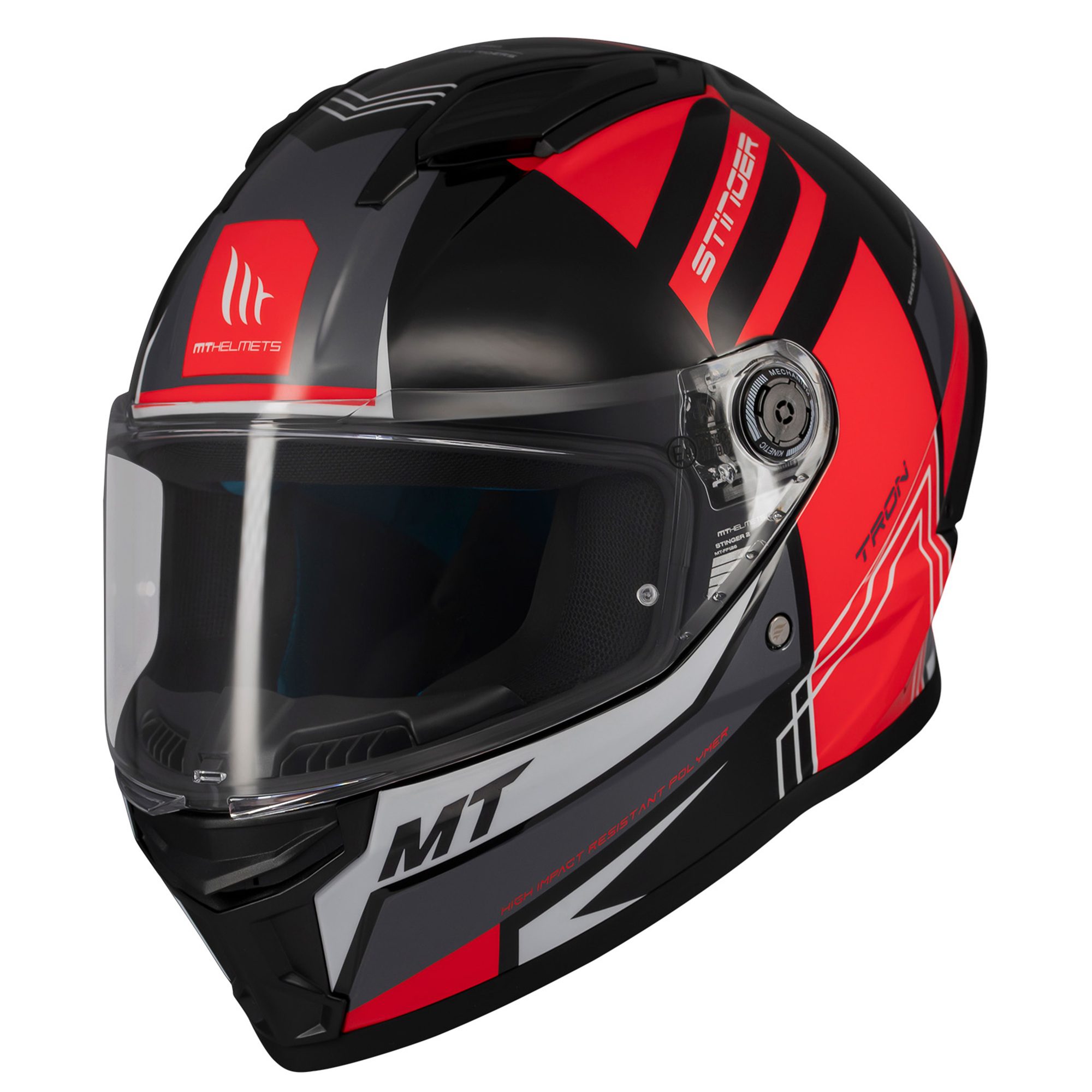 There’s nothing stingy about the MT Stinger 2 Tron motorcycle helmet! This sport inspired entry level motorbike helmet offers high-end performance and features for a fraction of the price of it’s competitors. A lightweight HIRP (High Impact Resistant Polymer) outer shell ensures that you’re comfortable on longer rides, and keeps your noggin safe should it need too.