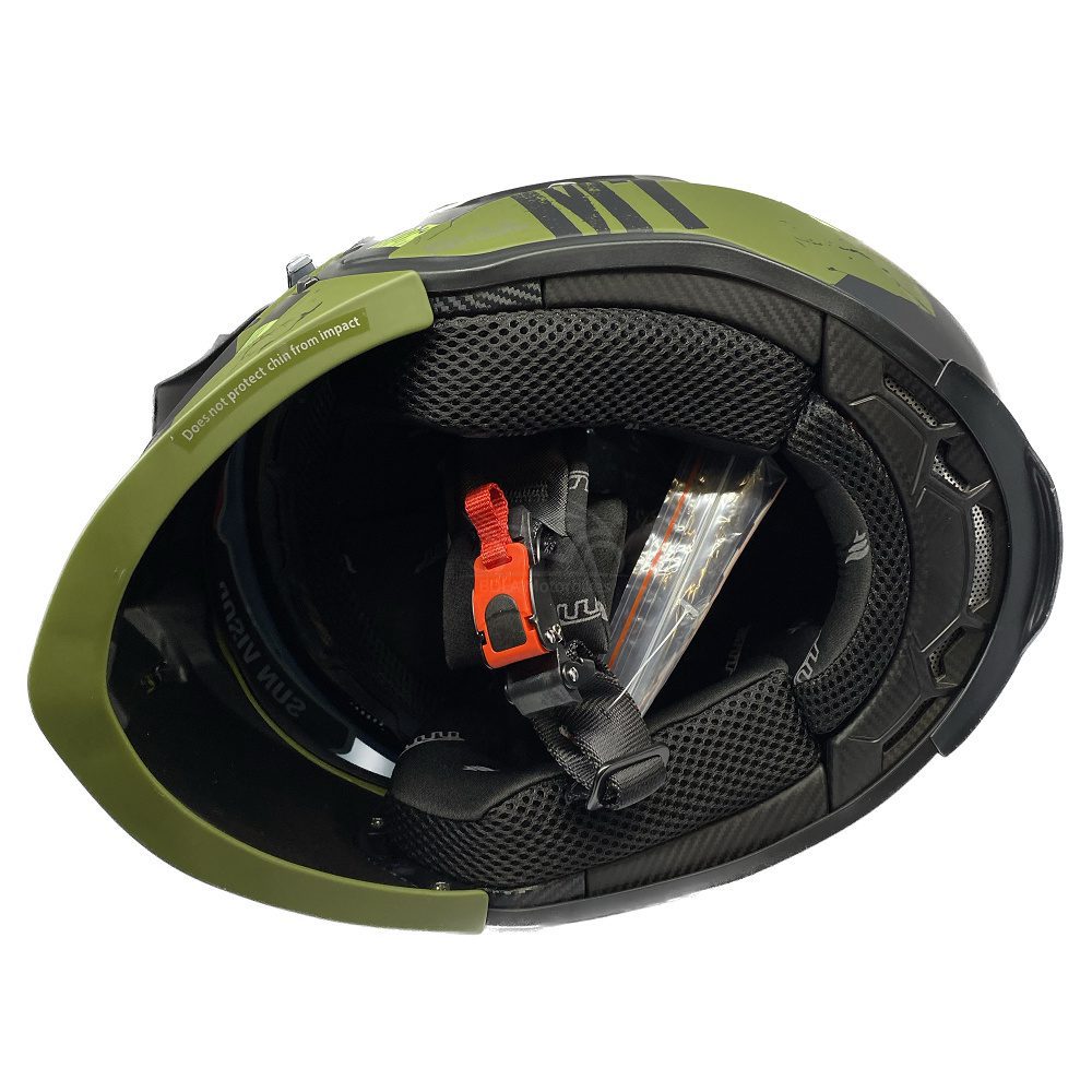 The MT Street Fighter Skull off road motorcycle helmet is perfect for adventure riders, green laners and trials enthusiasts looking to make a statement! With a removable mask & peak, the helmet is extremely versatile and can be ridden both on and off the road. An internal drop down inner visor helps the wind, while a fully removable interior liner allows you to keep the helmet feeling fresh long after its first outing.
