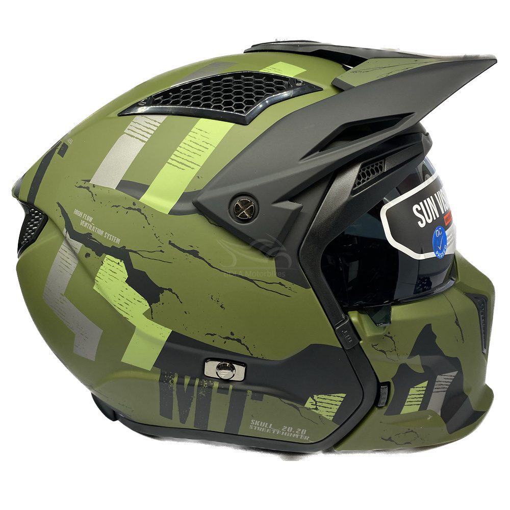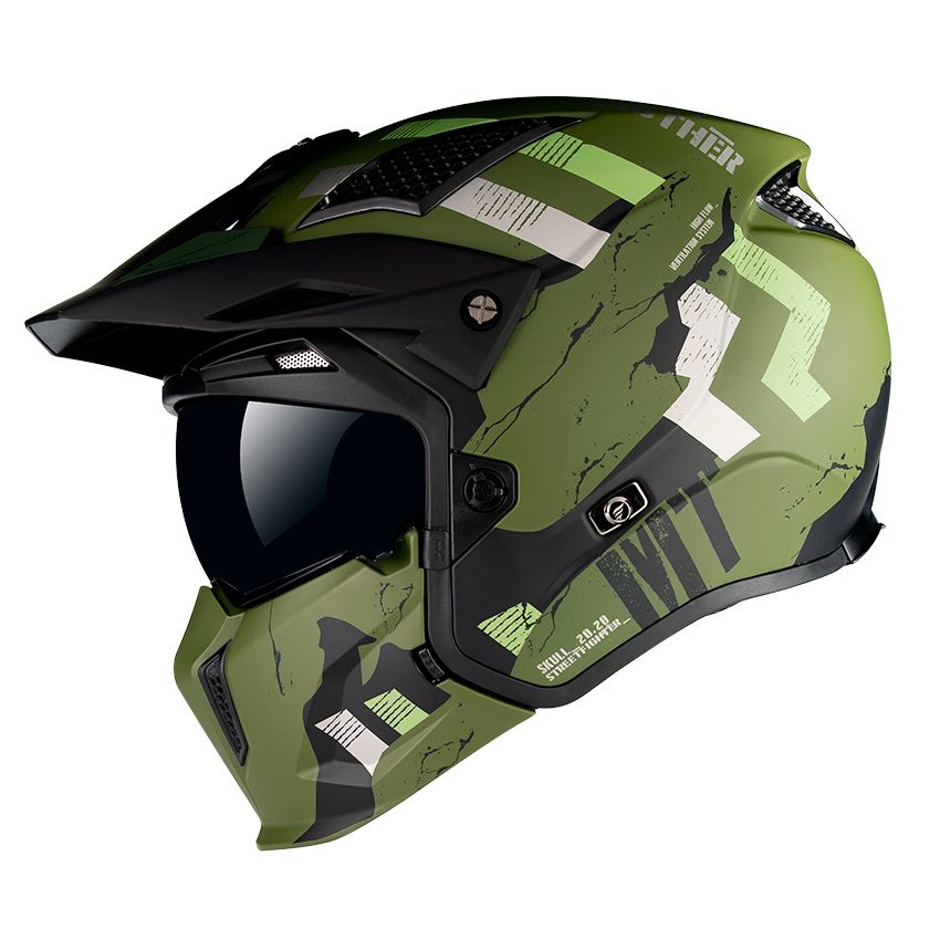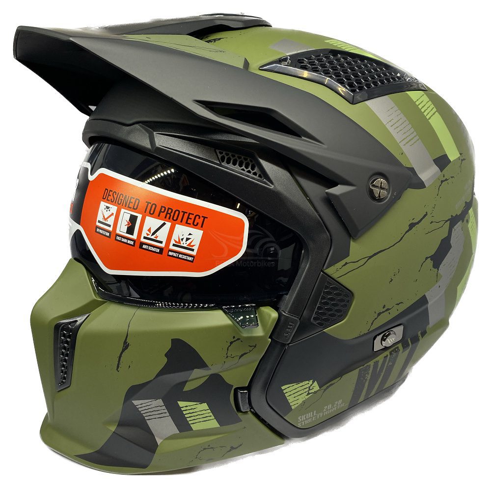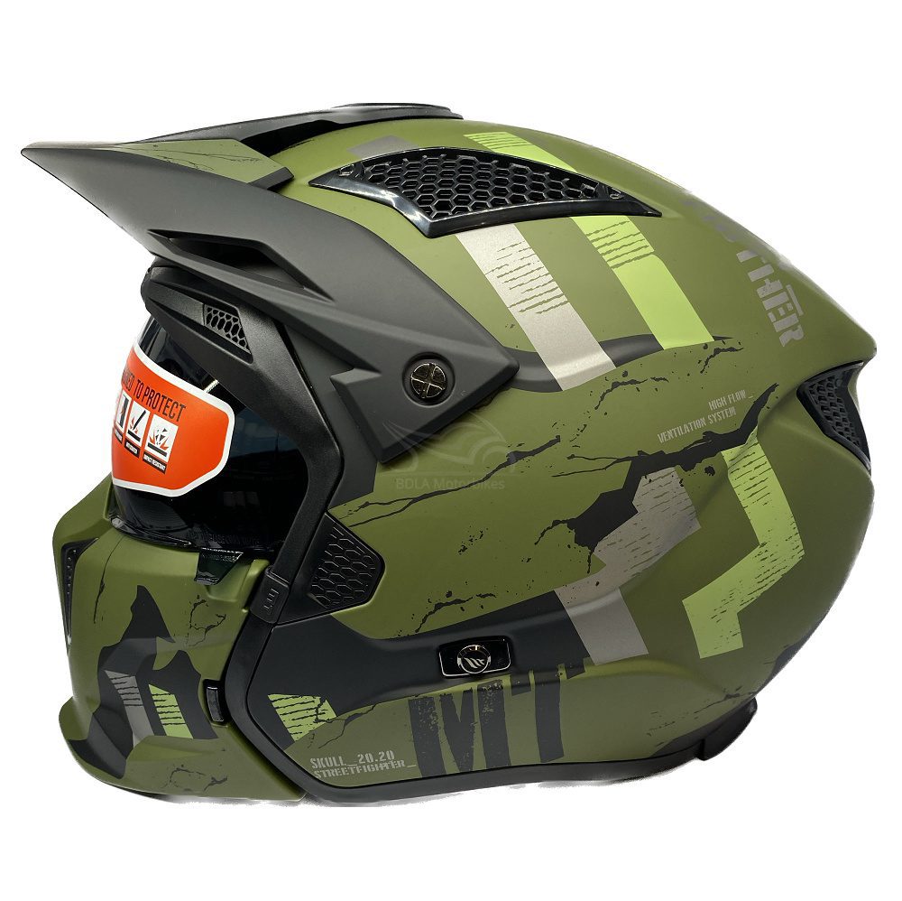 The MT Street Fighter Skull off road motorcycle helmet is perfect for adventure riders, green laners and trials enthusiasts looking to make a statement! With a removable mask & peak, the helmet is extremely versatile and can be ridden both on and off the road.