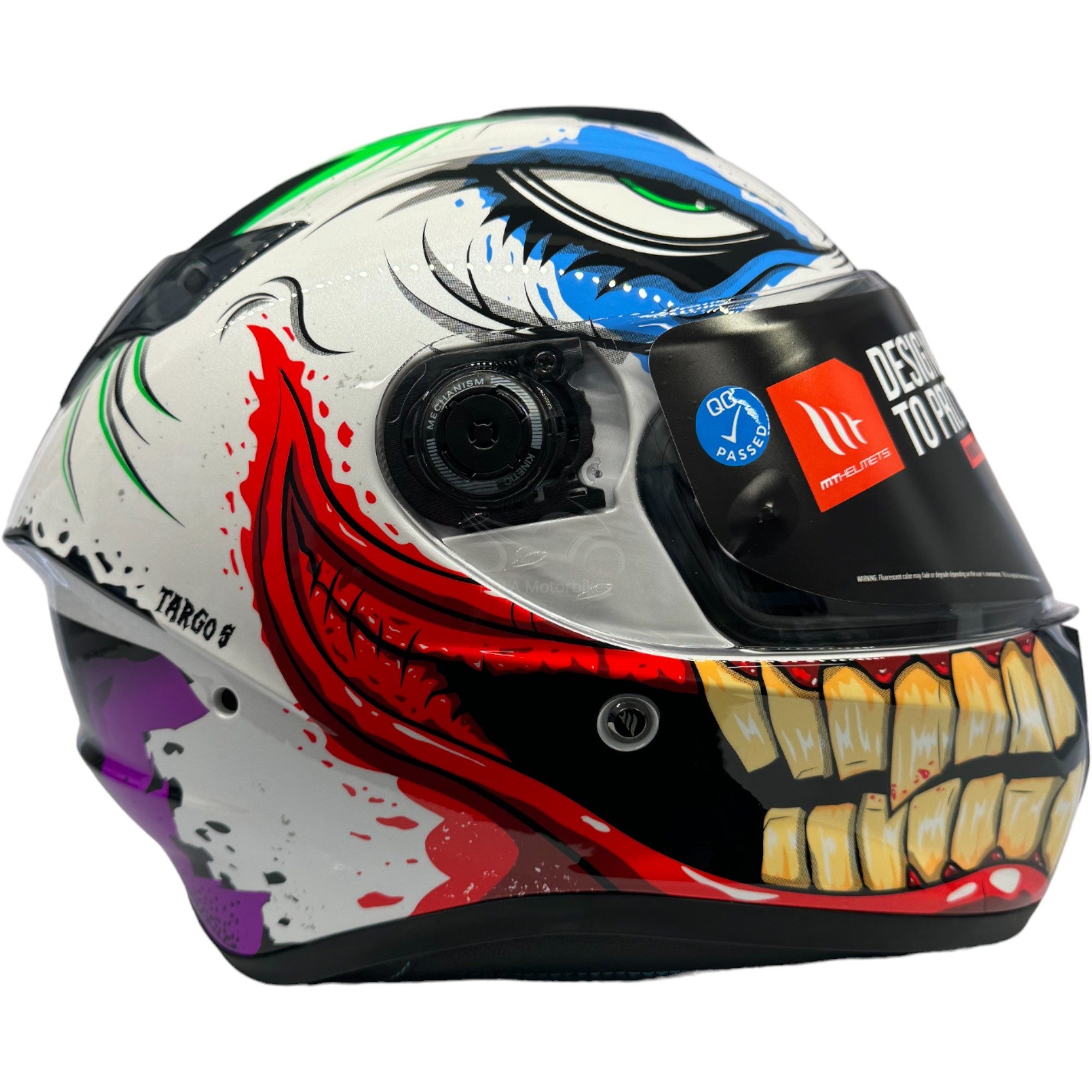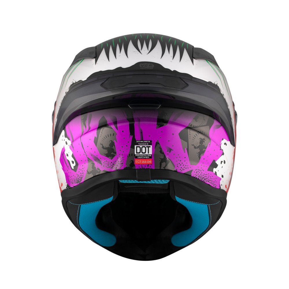The MT Targo S Joke full face motorcycle helmet offers ultimate value, and is the perfect helmet for everyday riders and commuters. Full to the brim with features, including a Pinlock ready visor alongside a multiple density EPS liner. The modern shell has a superb finish, and will continue to give long after the first time you put it on! Available in a range of colours and graphics to suit any riders gear and personal taste.