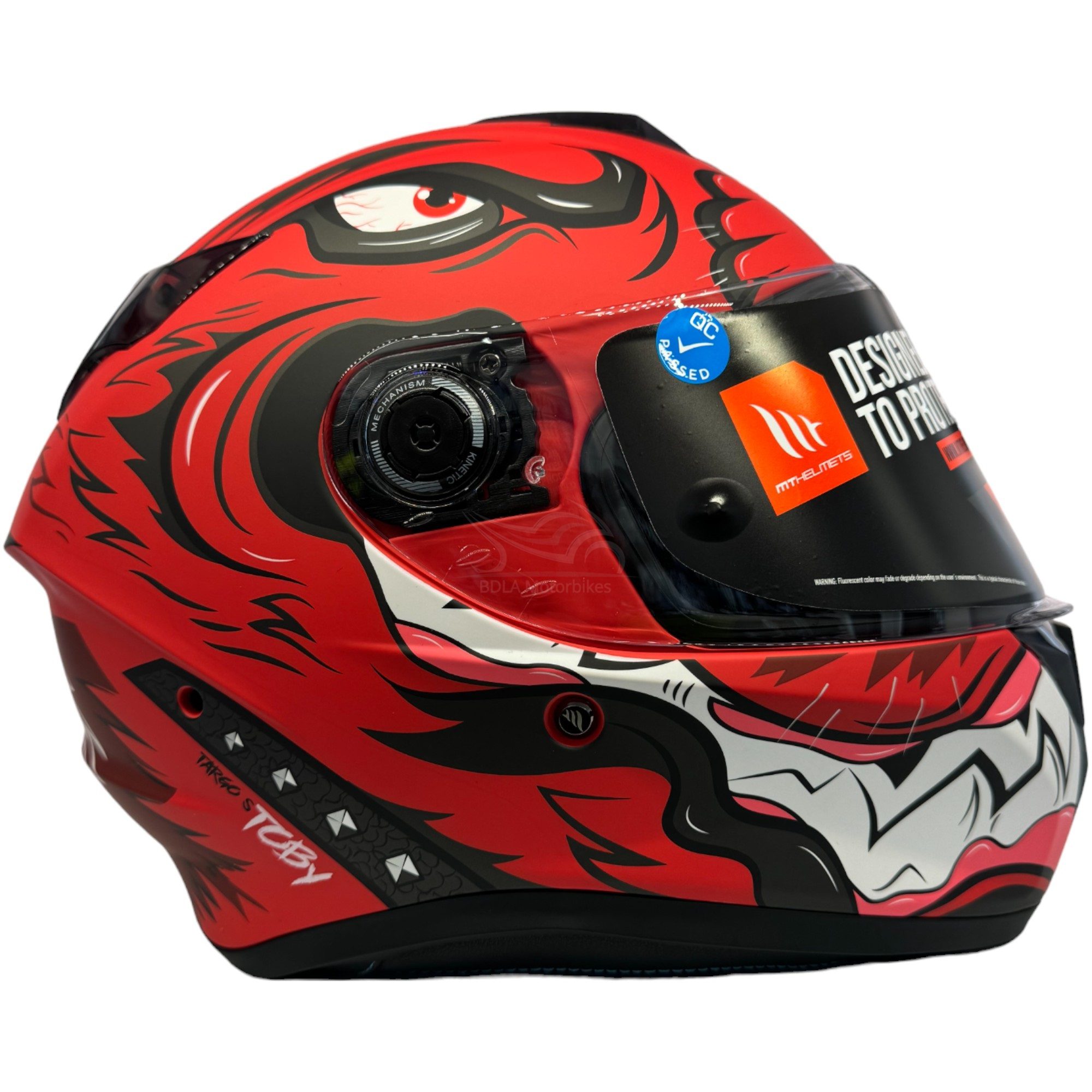 The MT Targo S Toby full face motorcycle helmet offers ultimate value, and is the perfect helmet for everyday riders and commuters. Full to the brim with features, including a Pinlock ready visor alongside a multiple density EPS liner. The modern shell has a superb finish, and will continue to give long after the first time you put it on! Available in a range of colours and graphics to suit any riders gear and personal taste.