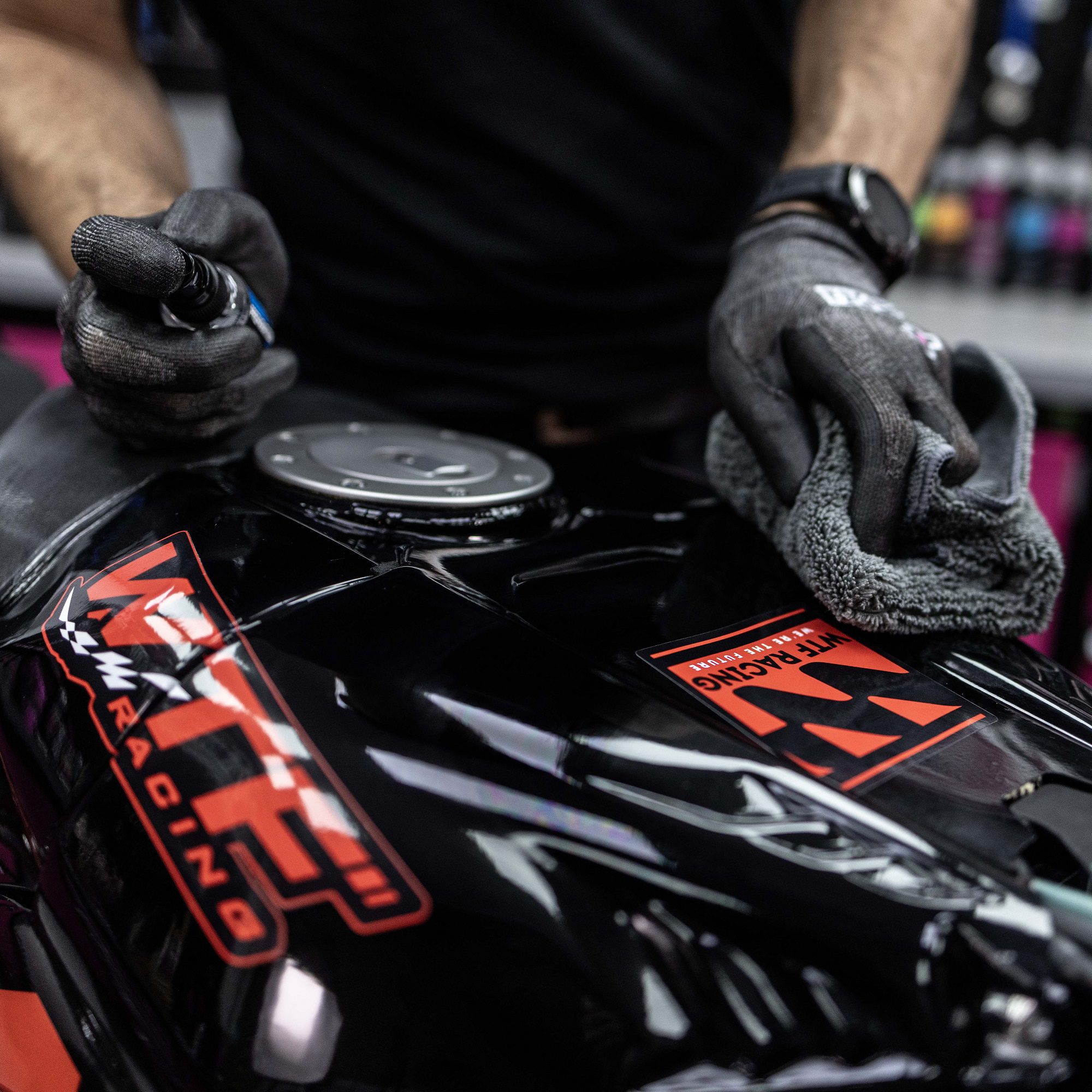Can be used on paintwork, carbon fibre, metal components, wheels, vinyl and rigid plastic trim.