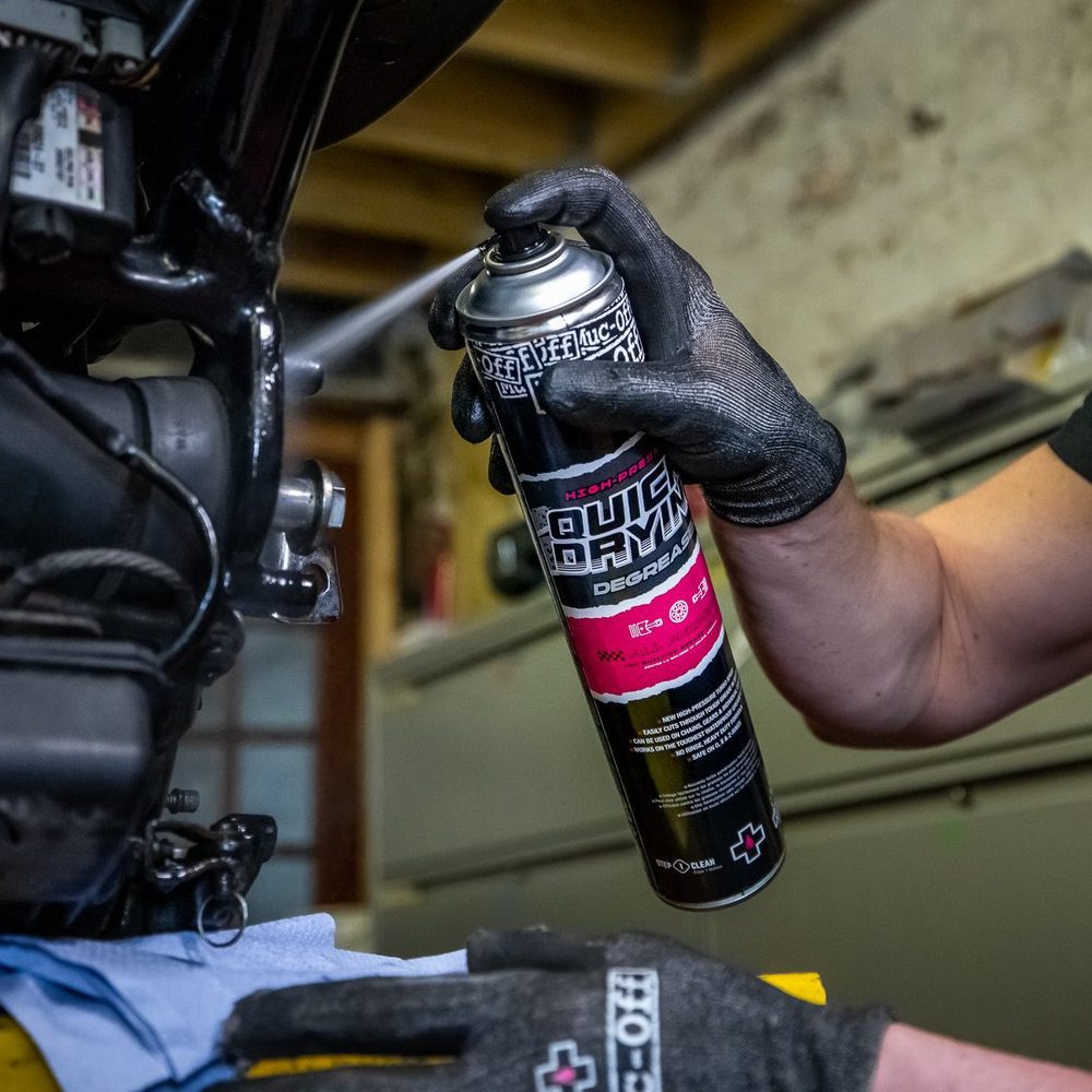 With its heavy-duty formula and high-pressure turbo spray, the Muc-Off High Pressure Quick Drying Degreaser makes light work of oil build up. Eliminating grease and grime, it cuts through thick build up and is suitable for all purposes including gears and components.