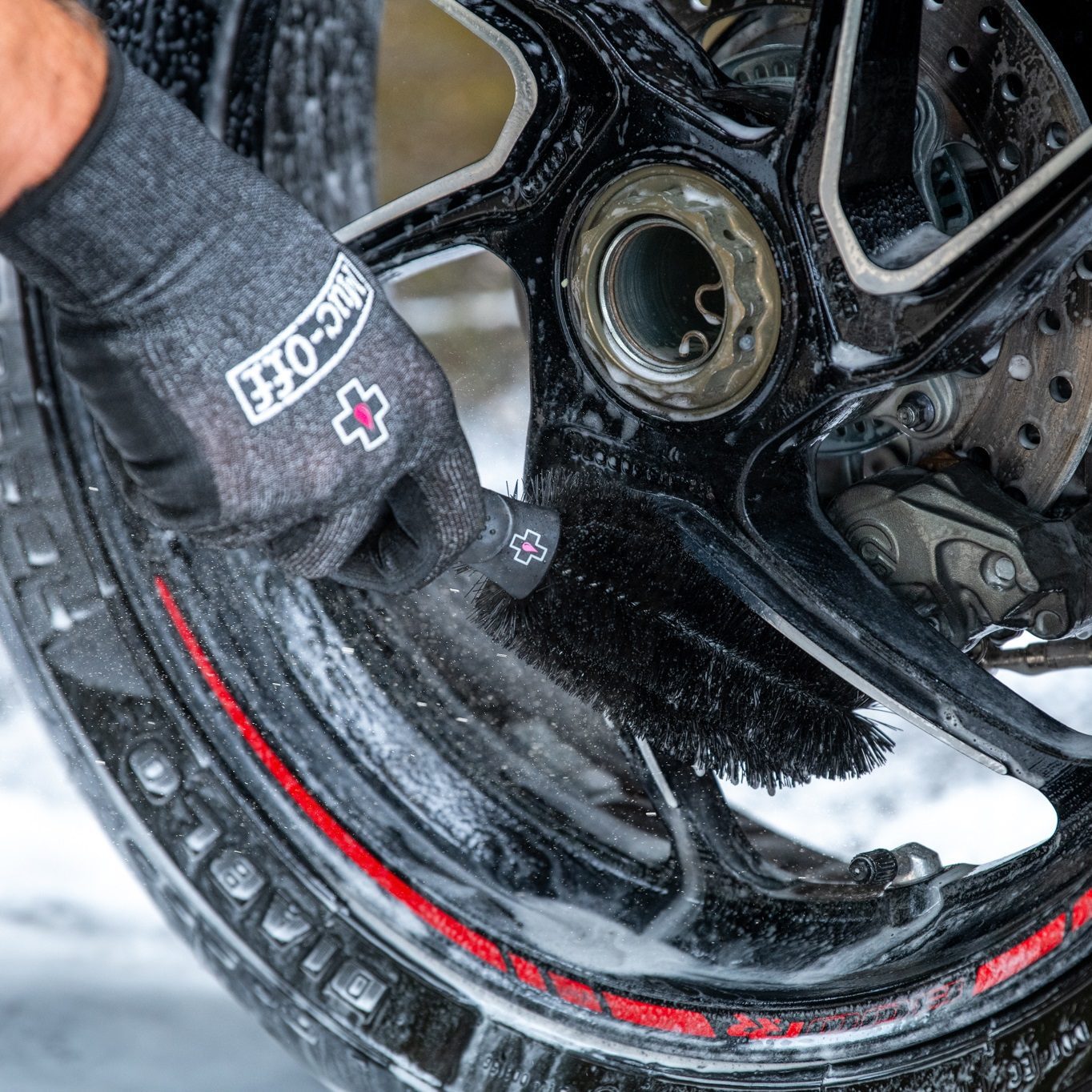 Muc-Off Wheel & Component Brush: The Wheel & Component Brush is shaped and contoured specifically to clean rims and spokes with ease. New design features a tough impact resistant dual density handle that won’t slip in extreme conditions, durable nylon bristles and rubberised impact zones for maximum protection on delicate finishes.