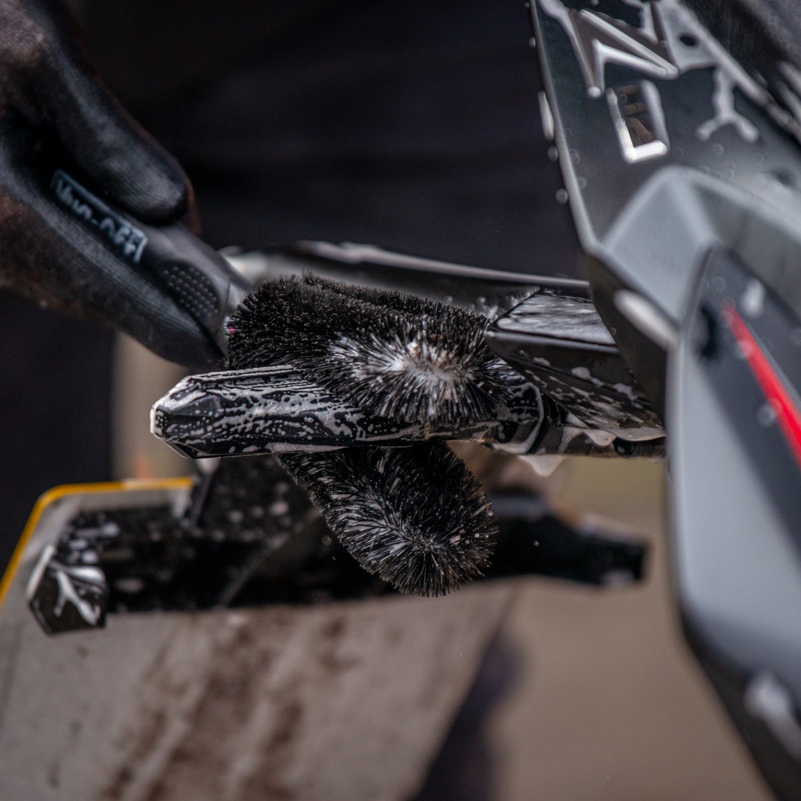 Muc-Off Detailing Brush: The Detailing Brush is ideal for reaching hard-to-shift dirt on sprockets, hubs and other tight areas such as suspension mounts or fork crowns. All new design features a tough impact resistant dual density handle that won’t slip in extreme conditions, durable nylon bristles and rubberised impact zones for maximum protection on delicate finishes.