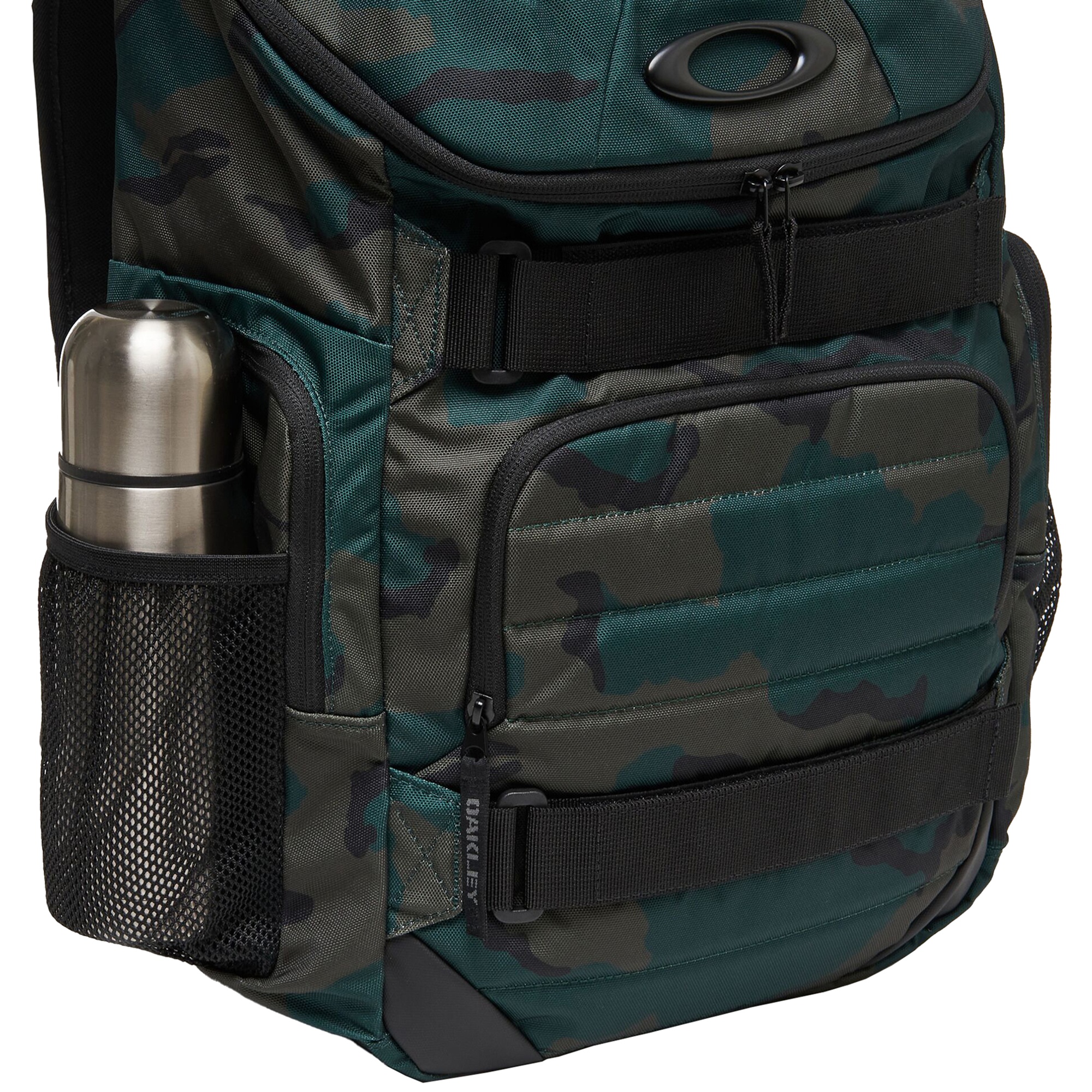 The Oakley Enduro 3.0 Big Backpack covers your daily excursion needs. A tough exterior with water repellent coating, along with padded laptop and tablet pockets and internal organizational panel keeps gear organized and secure, while the external eyewear pocket allows for quick storage of your shades. Breathable mesh on the back panel delivers all-day comfort, and Jacquard webbing with a branded puller completes what’s sure to be a worthy trailside companion.