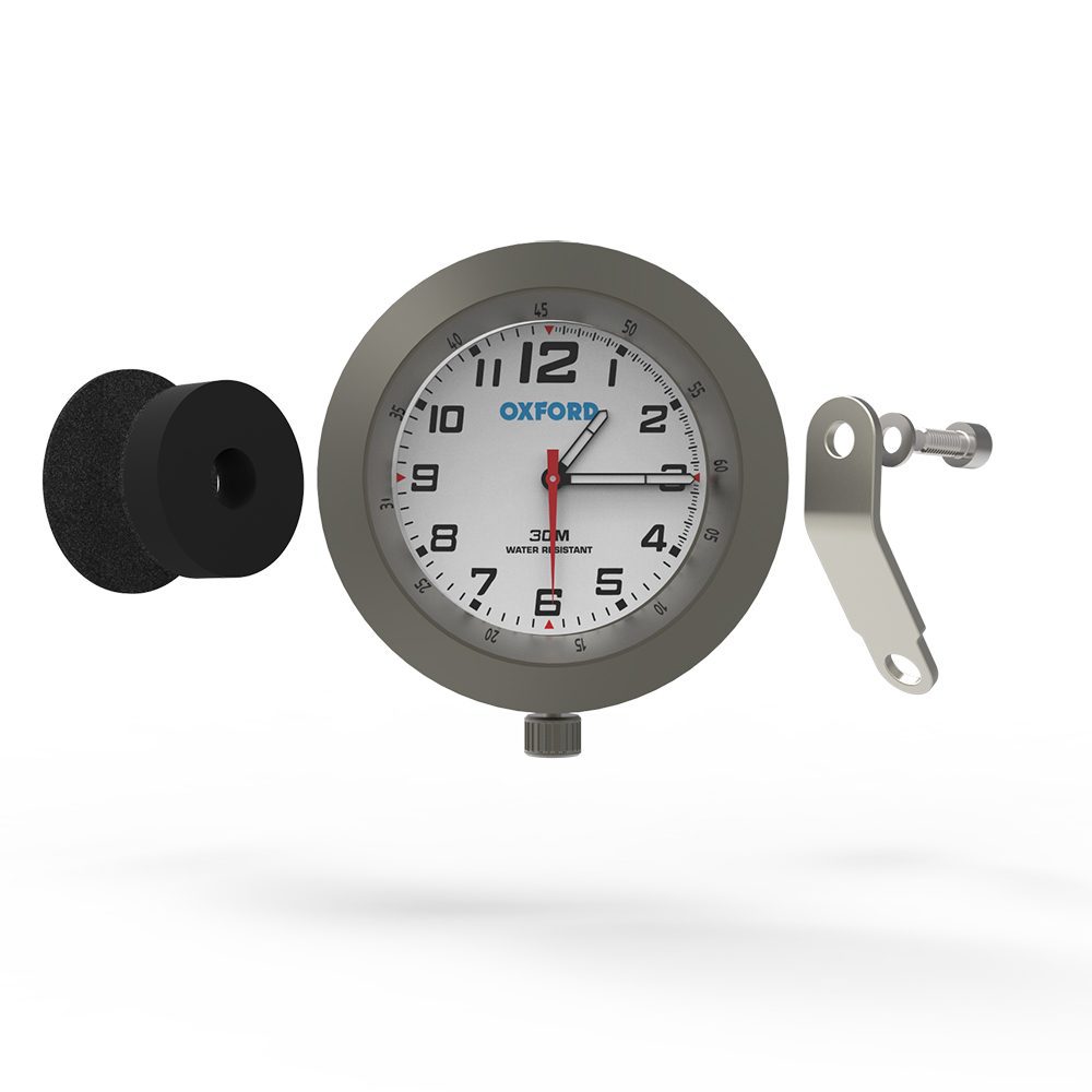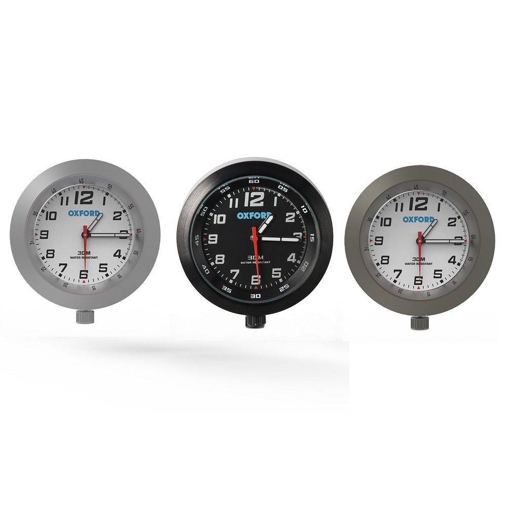 Never be late to arrive again with the Oxford Analogue Clock! Effortlessly tell the time without having to look at your watch. Designed specifically for use on motorcycles, with a tough alloy and stainless steel construction. Available in a range of colours to suit your bike.
