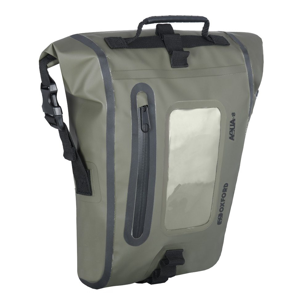 The tank bag is an ideal size for a change of clothes, and a magnetic base secures the motorbike tank bag in place.The Oxford Aqua M8 khaki magnetic motorcycle tank bag is a great solution for riders looking to take their items with them on any journey, long or short.