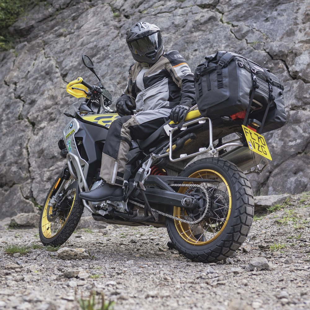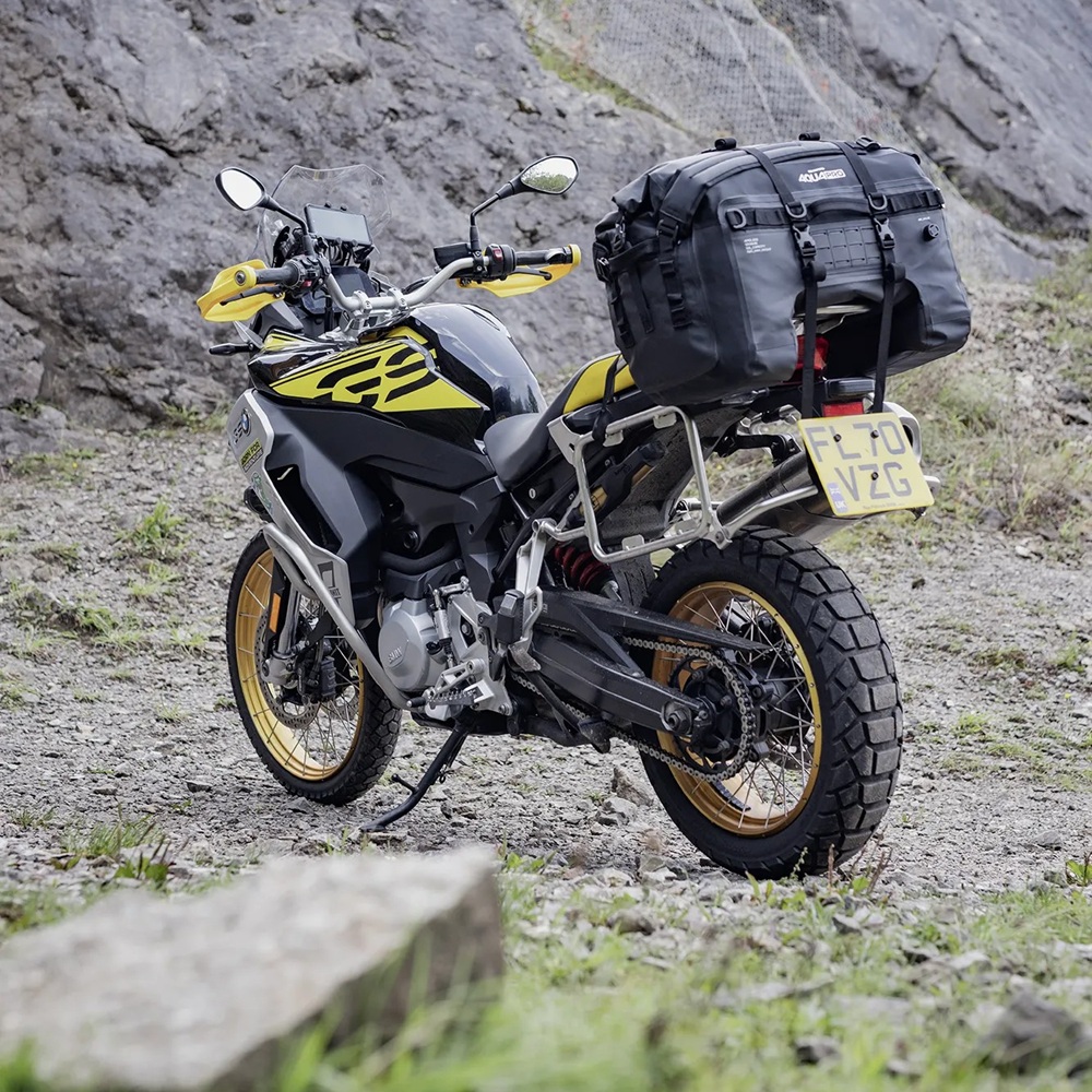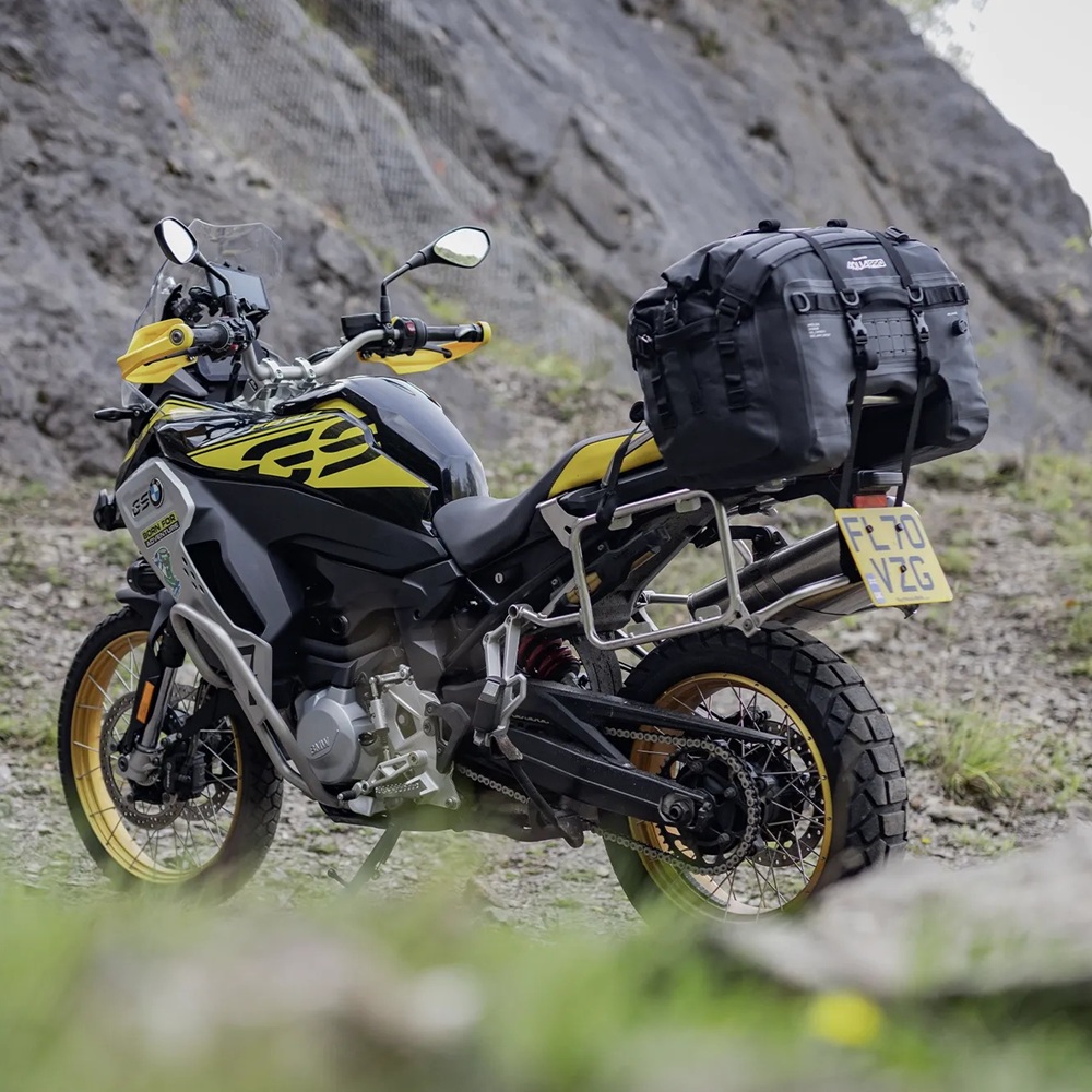 Completely waterproof and wipeable, a heavy duty 1000D PVC tarpaulin base is welded to a more supple 500D PVC roll top closure. Inside, you’ll find that a removable & semi-rigid EVA base gives the bag a solid form. Grab handles on all sides as well as detachable back-pack padded shoulder straps enable easy handling on and off the bike. Four quick-release buckle straps attach the bag securely to a motorcycle tail and an under-seat strap adds additional security.