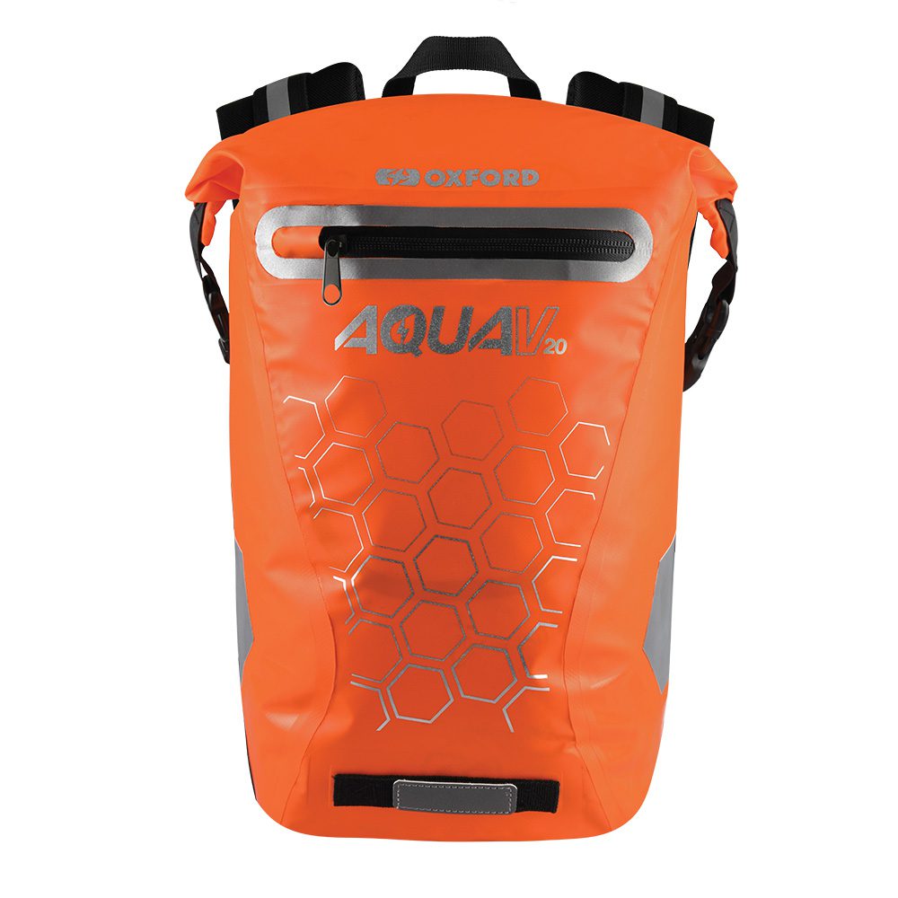 The Oxford Aqua V20 orange motorcycle backpack is a great choice for riders looking to have a convenient, dependable and versatile solution to carrying luggage on their bike. With a capacity of 20 litres, you’ll be able to carry a substantial amount around with you, and all without having to fit anything to your bike beforehand. Can also be used in everyday situations when you’re not on your bike.