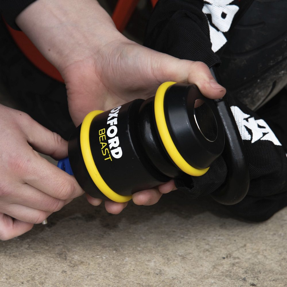 The Oxford Beast motorcycle chain is the ultimate deterrent available from Oxford. With whopping 22mm link chains, the Oxford motorbike security chain is a serious bit of kit that will let all would be thieves know they’re in for a real battle. The Oxford Beast has been vigorously tested to ensure its strength and protection, to be awarded a Diamond Sold Secure rating is no small feat. The Beast has passed attack tests from a huge range of tools, commonly used by thieves including, pliers bolt croppers, drill, and most impressively a 90 second angle grinder attack. Available in a range of lengths to suit any riders needs.