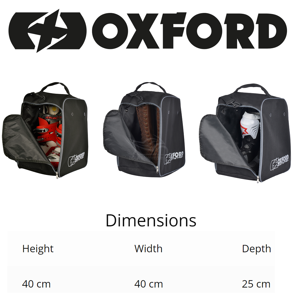 The Oxford Bootstash is ideal for riders looking to take a change of footwear with them while on their journeys. The bootstash offers a convenient and tidy method to store your boots whether you’re on your travels or looking for a neat way to put them away at home. The size of the bag ensures that a wide range of boots will fit, including adventure boots and cruiser boots. A large pocket on the front of the bag is great for storing socks, keys and other accessories.
