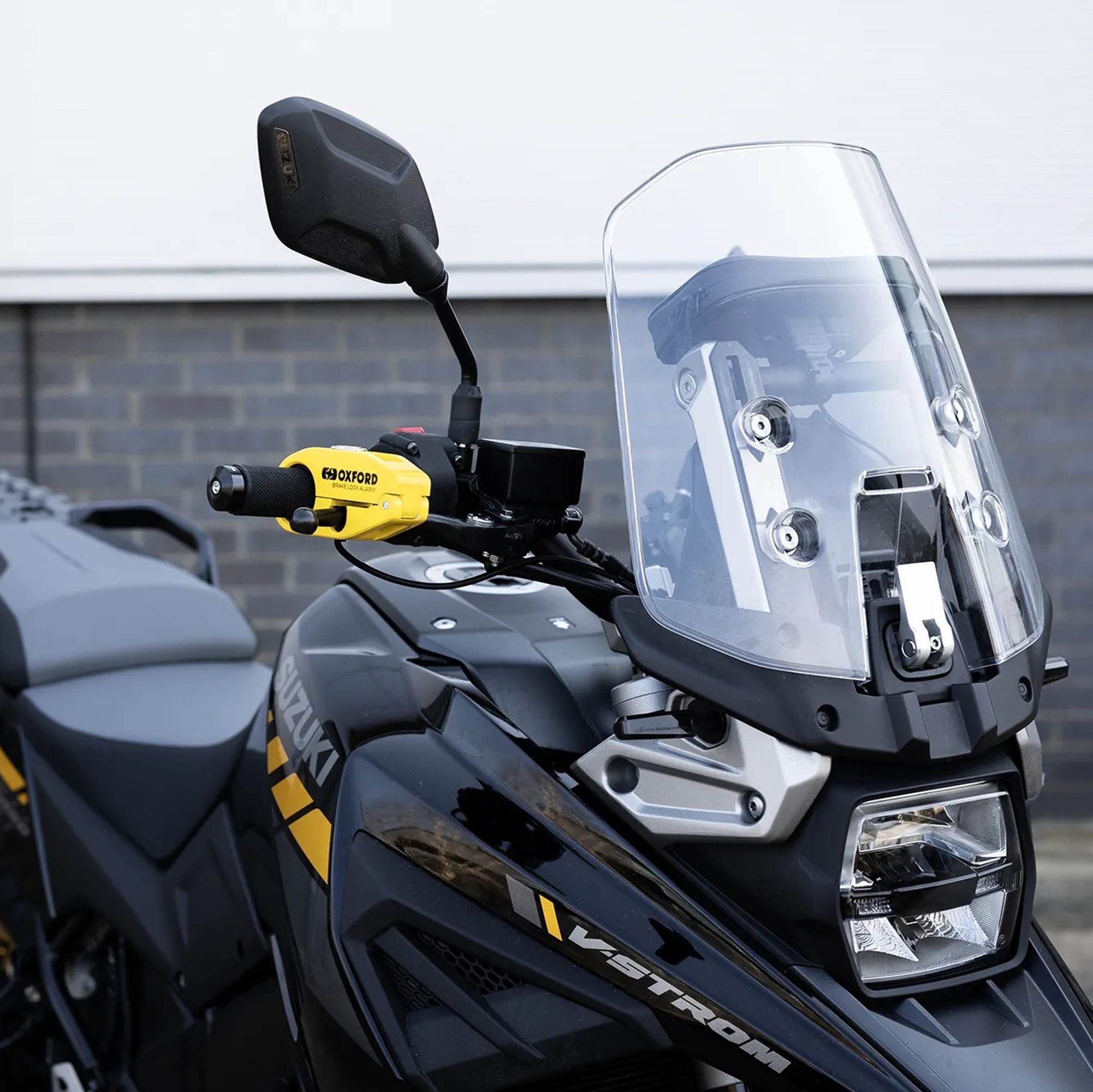 Highly visible security that immobilises the motorcycle, scooter or ATV.
