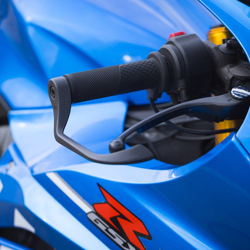 A right-hand sided, race-ready Carbon fibre lever guard which delivers great strength-to-weight ratio and a minimal, clean aesthetic. The new Carbon Lever Guard will keep your brake protected both on and off the track from any foreign contact.