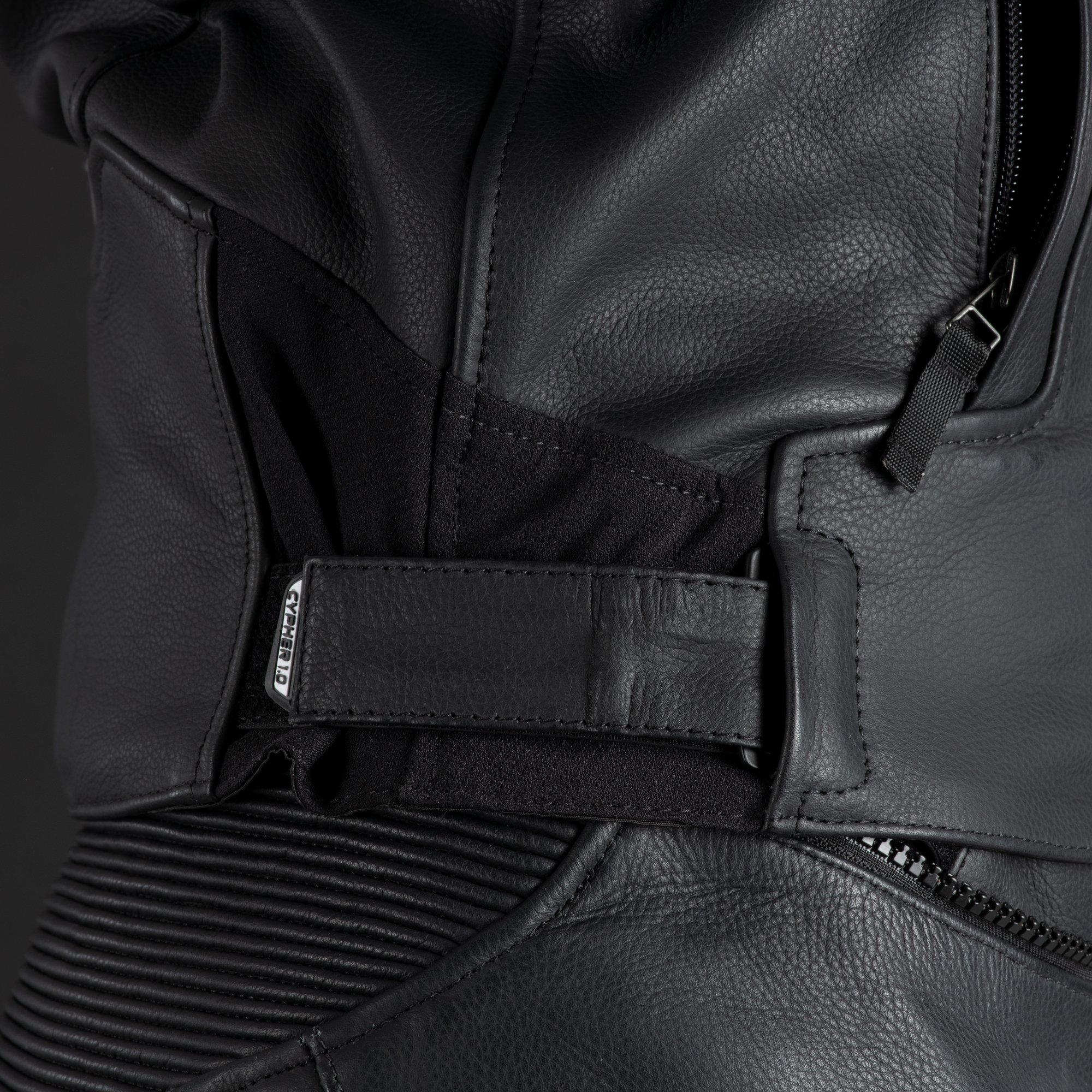 Accordion leather stretch panels at the upper back and above the elbow offer improved flexibility.