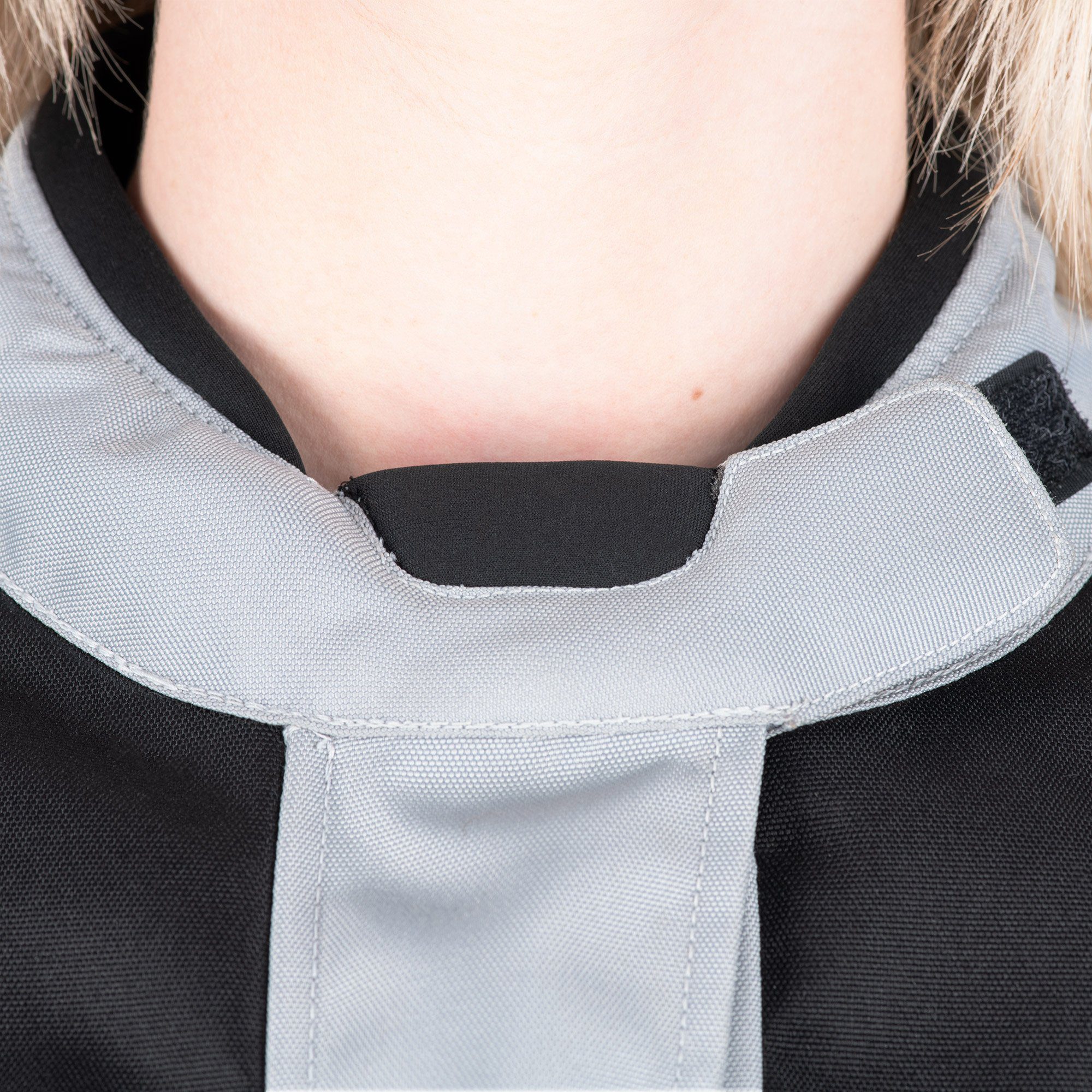 Neoprene rolled neck for next-to-skin comfort.