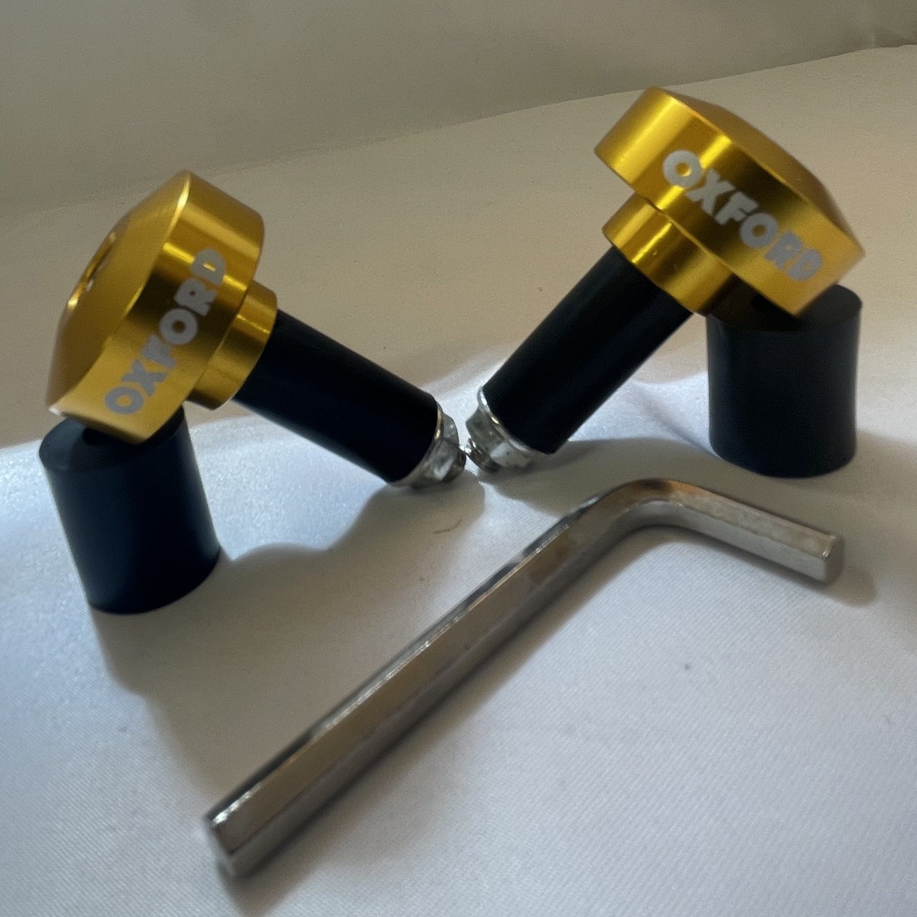 Whether you’re looking to replace or upgrade your old and tired motorcycle bar ends, the Oxford gold bar ends 1 are a great choice. Constructed from CNC aluminium, the weighted bar ends will fit all standard 22 mm motorcycle handlebars.