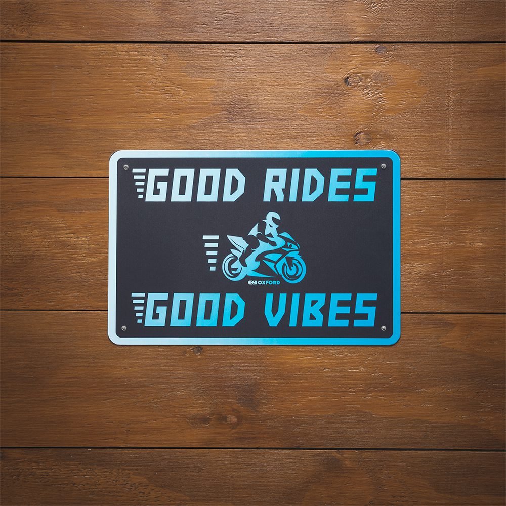 The Oxford Good Vibes motorcycle garage sign is perfect for riders looking to finish of their workspace, sheds and garages. Celebrate being a part of the greatest community on earth by displaying a metal motorcycle sign on your wall. Whether you commute to work, cross continents or tear up the race track there’s a sign that suits your riding style. With pre-drilled holes perfect for mounting, the metal motorbike sign is a superb gift for the biker who has it all.